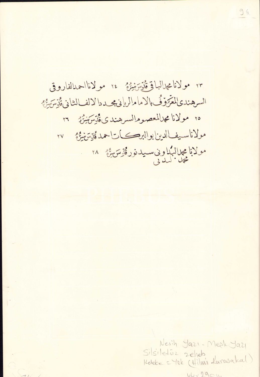 Nesih Silsiletü'z-Zeheb Meşk Yazı, 29x44 cm