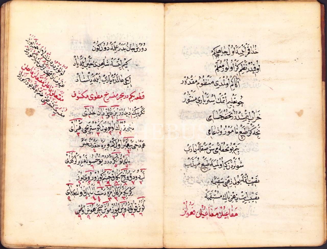 Aruz Kalıpları ve Bahirlerine Dair Osmanlıca Yazma, 1205, Derl. Mehmed el-Giridî, 44 varak, 13x20 cm