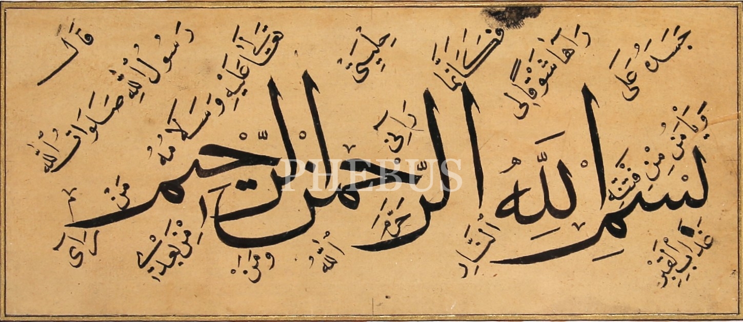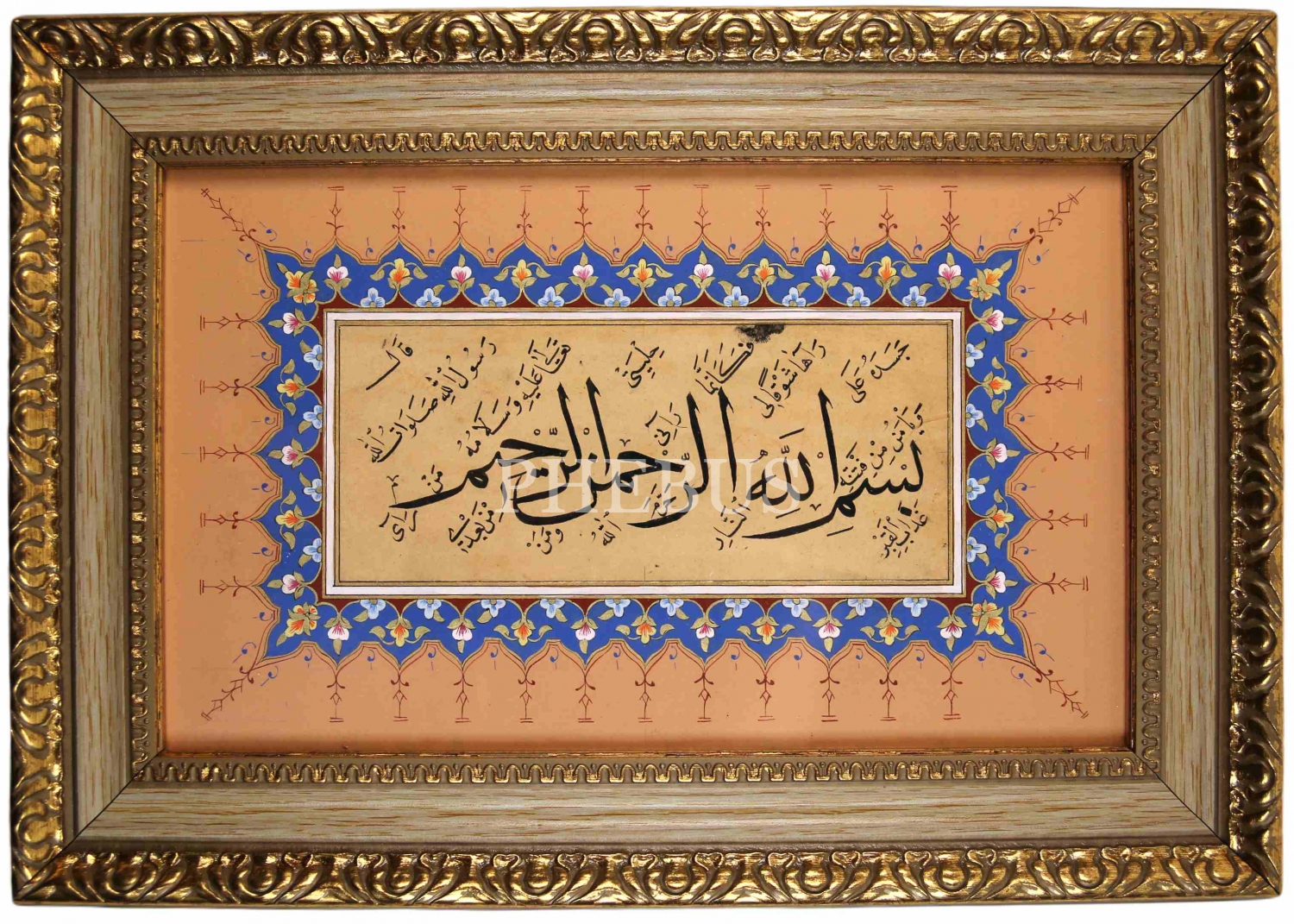 Sülüs Besmele ve Hadîs-i Şerîf, tezhipli, çerçeveli, 8x17 cm