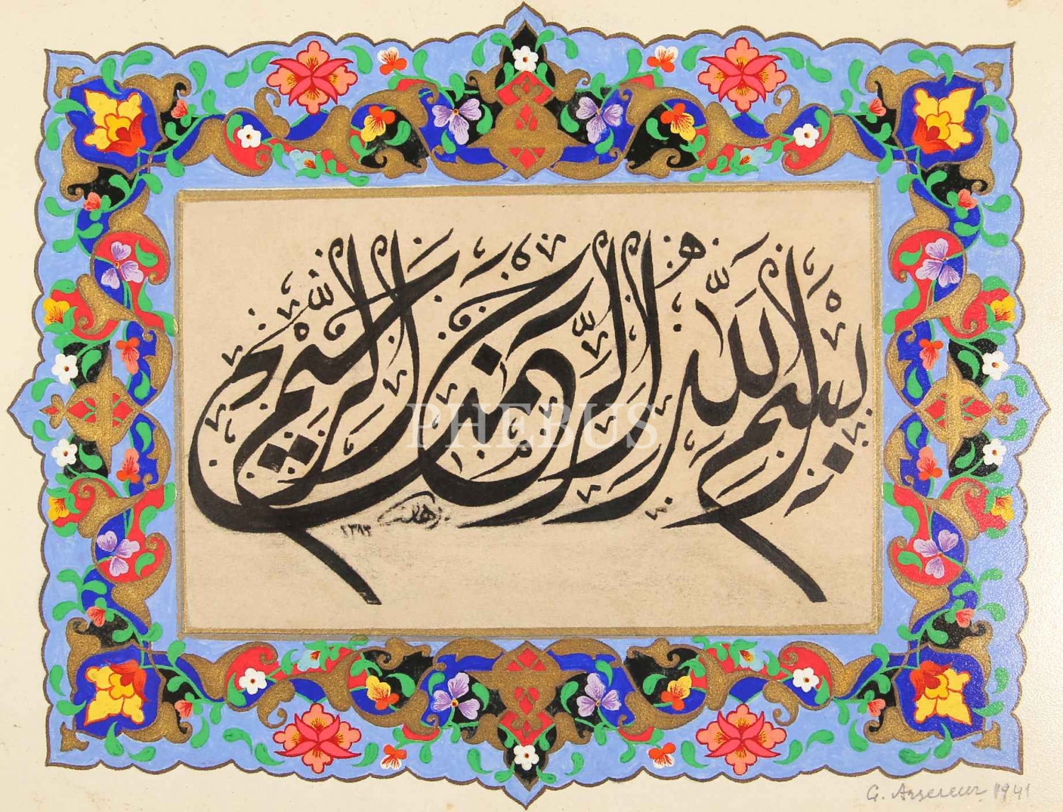 Divani İstifi Besmele, Burhan ketebeli ve 1283 tarihli, tezhipli, çerçeveli, 17x22 cm