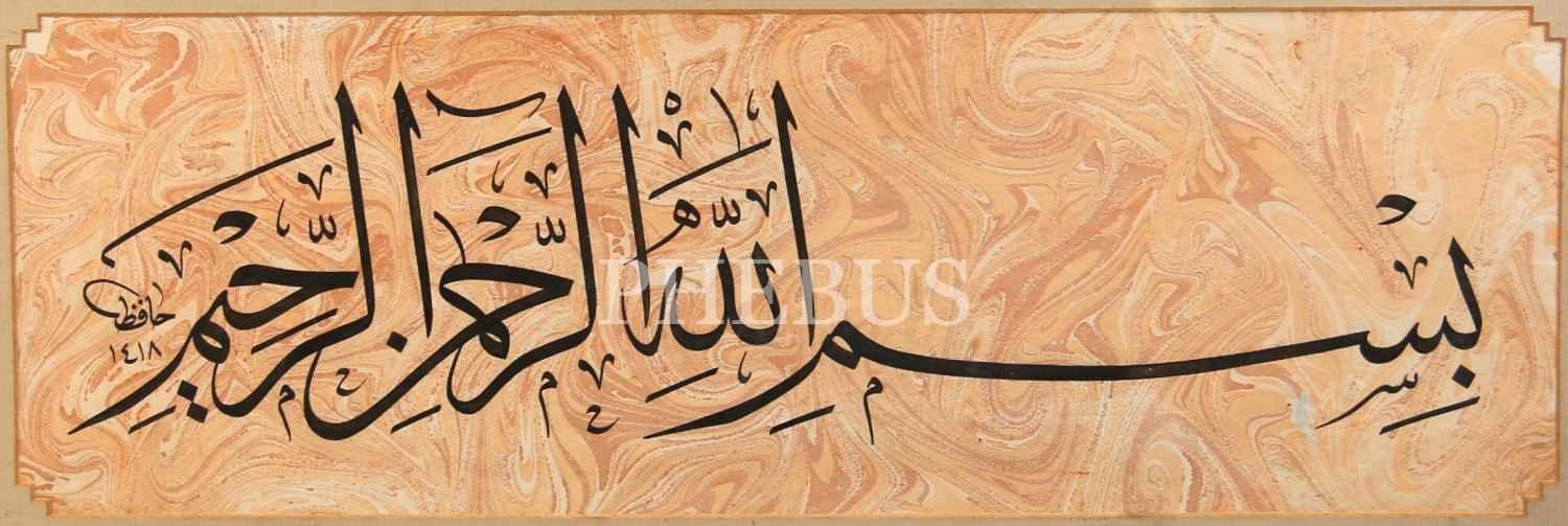 Celî Sülüs Besmele, Hafız ketebeli ve 1418 tarihli, ebrulu, çerçeveli, 16x48 cm