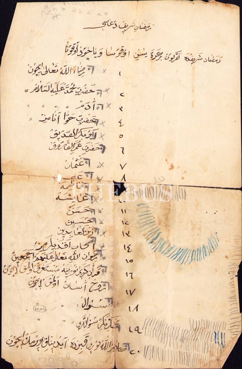 Ramazan Günleri Okunacak Yâsîn Sûresinin Ne Niyetle ve Kimlerin Ruhlarına Armağan Edilerek Okunacağına Dair El Yazması Liste, 21x32 cm, haliyle