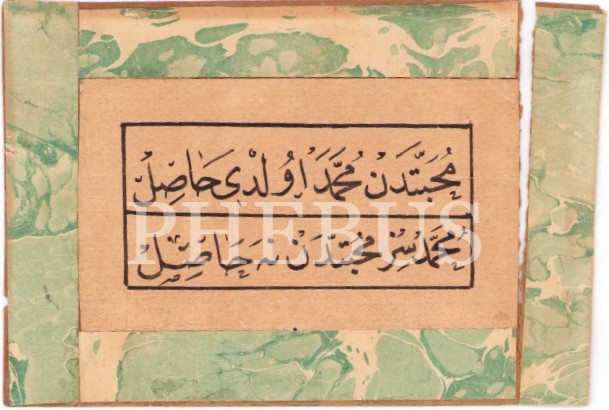 Sülüs Yazı, "Muhabbetden Muhammed oldu hâsıl, Muhammed'siz muhabbetden ne hâsıl", ebrulu, 6x10 cm
