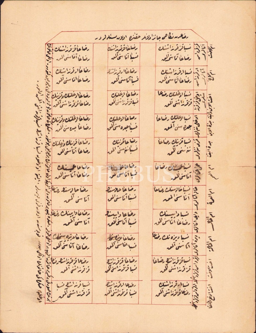 Süt Hısımlığına Göre Caiz Olan Nikah Türlerine Dair Osmanlıca Yazma Varağı, 18x24 cm