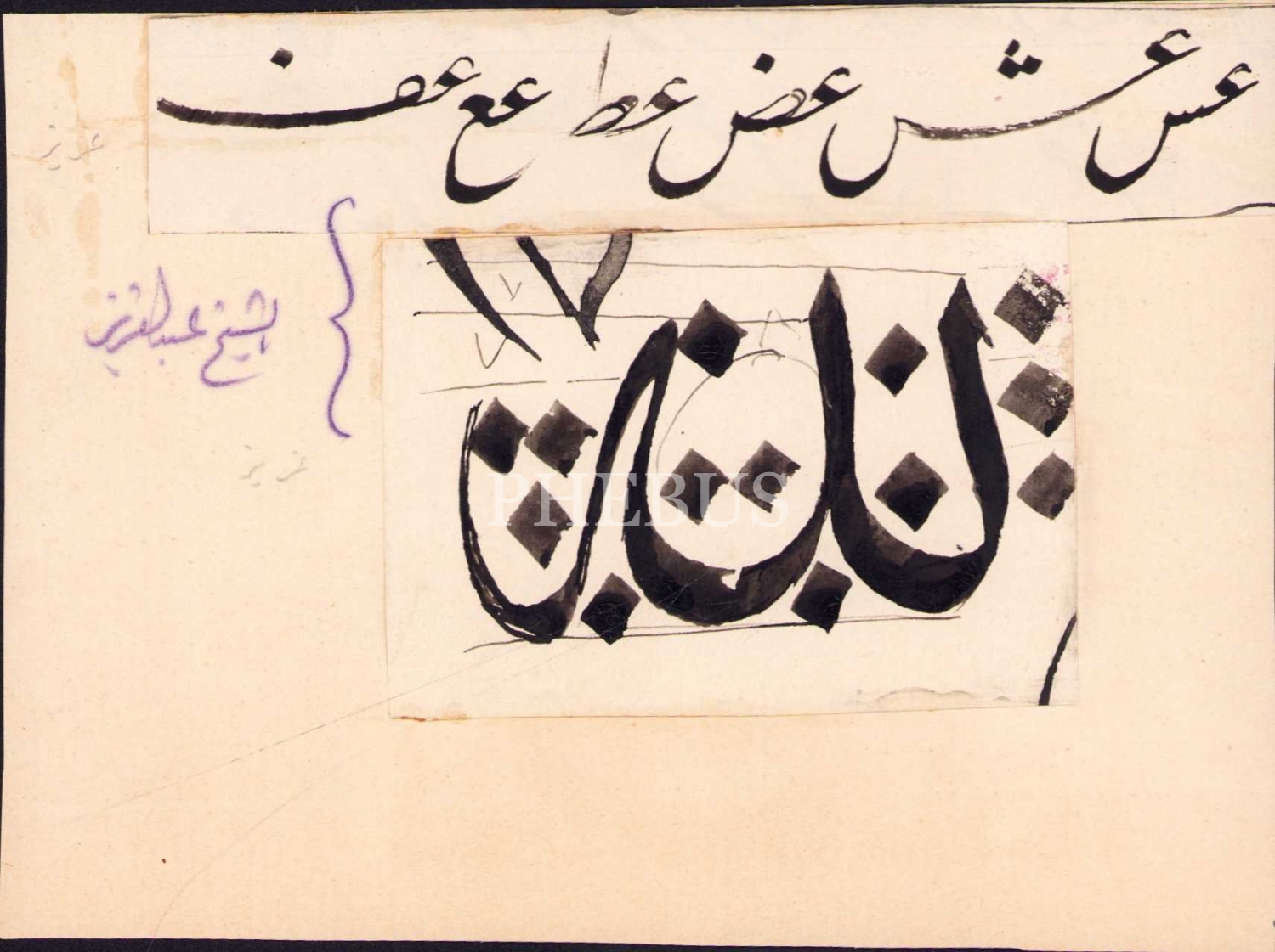 Hattat Halim Özyazıcı Terekesinden Ta'lik Yazı Çalışması ve Lafzatullah, 10x14 cm
