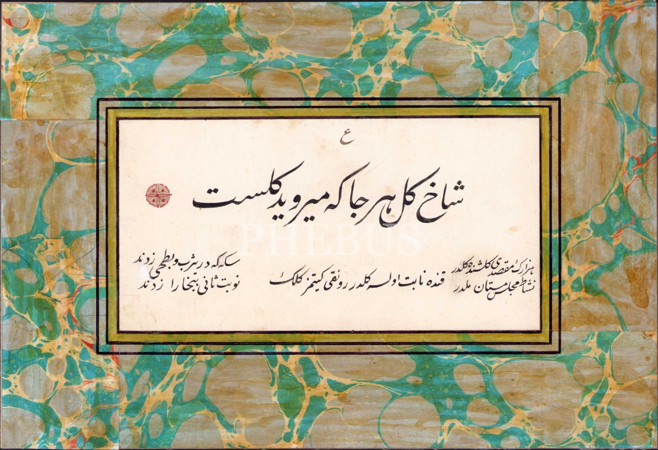 Farsça Ta'lik Yazı, ebru çerçeveli, 9x18 cm