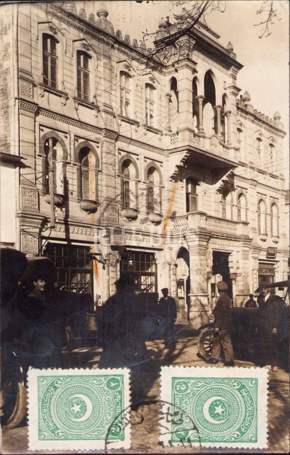 Osmanlıca "Belediye İtfaiyyesi" tabelasının asılı olduğu bina görselli kartpostal