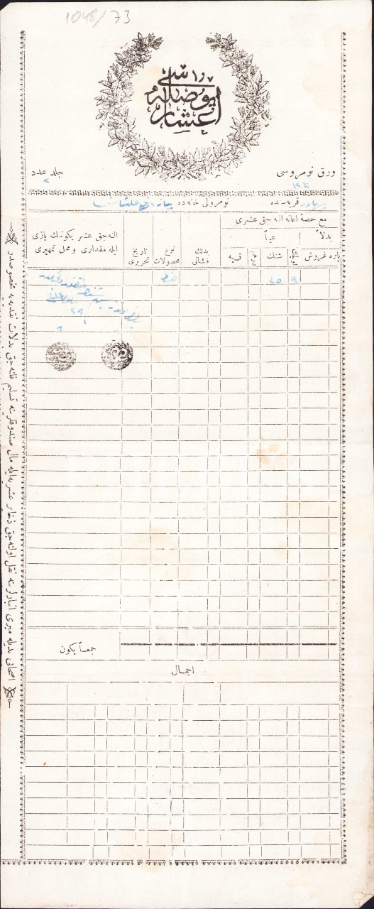 1312 tarihli a'şâr [öşür] pusulası, 16x39 cm