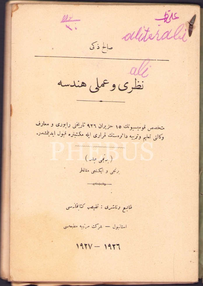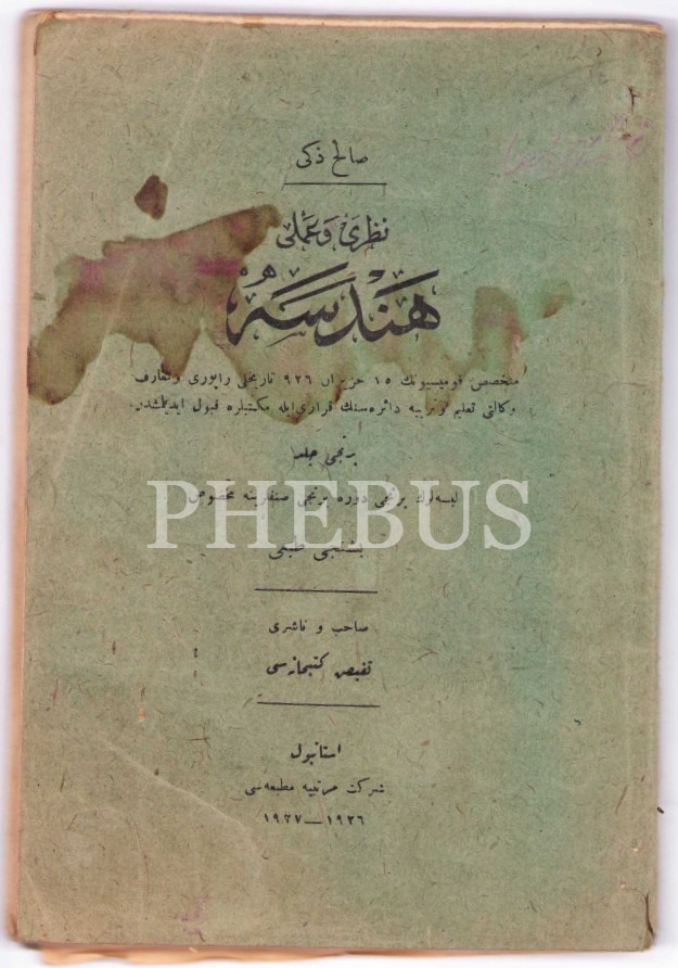Osmanlıca Nazarî ve Amelî Hendese [Birinci cilt], Tefeyyüz Kütüphanesi, Şirket-i Mürettibiye Matbaası, İstanbul 1926, 193 sayfa