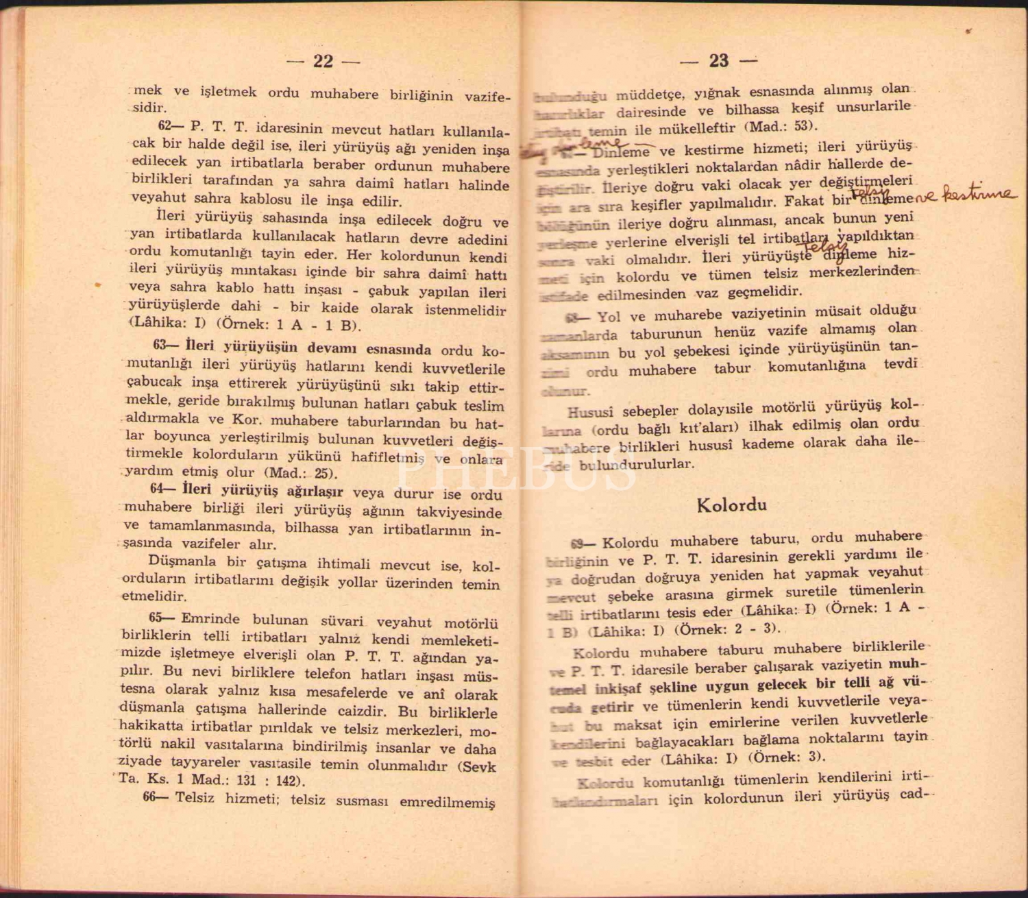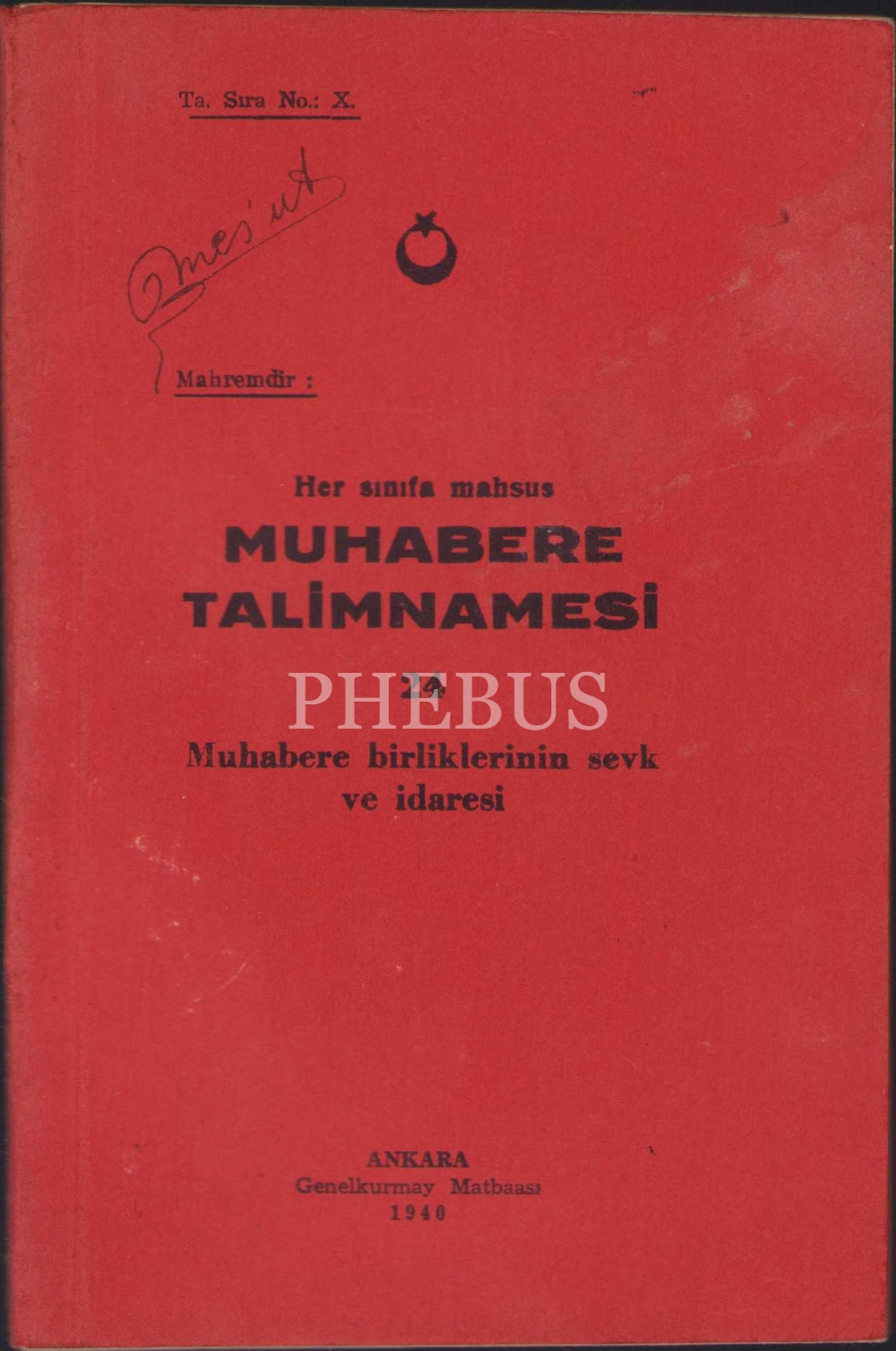 Muharebe Talimnamesi, Muharebe Birliklerinin Sevk ve İdaresi, Ankara, Genelkurmay Matbaası, 1940, 78+29 sayfa, 11x17 cm