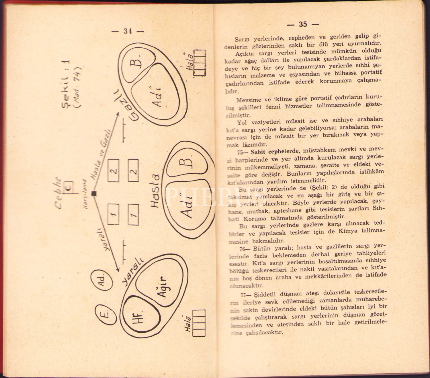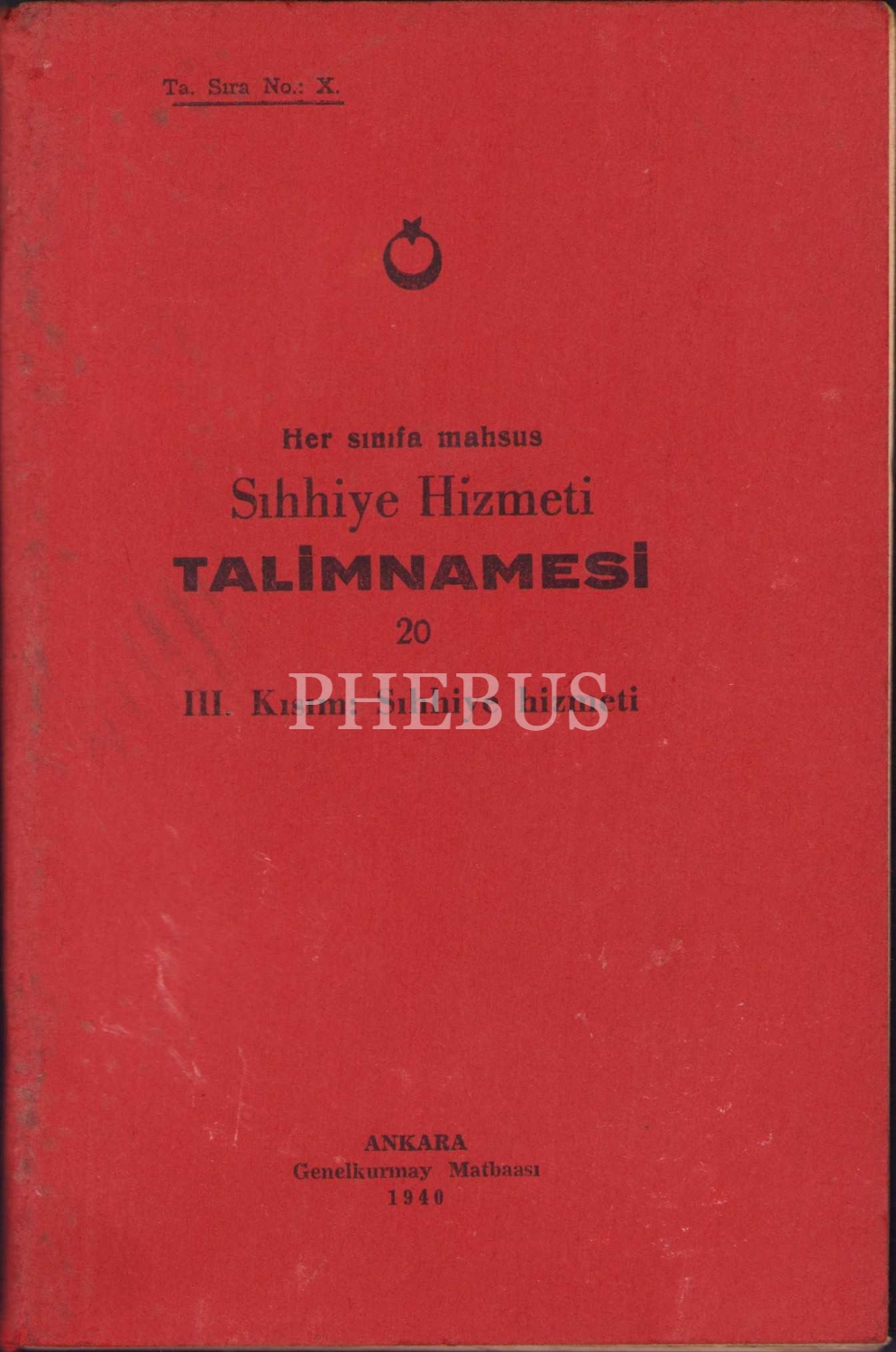 Sıhhiye Hizmeti Talimnamesi, Sıhhiye Hizmeti, Ankara, Genelkurmay Matbaası, 1940 tarihli, 11x17 cm