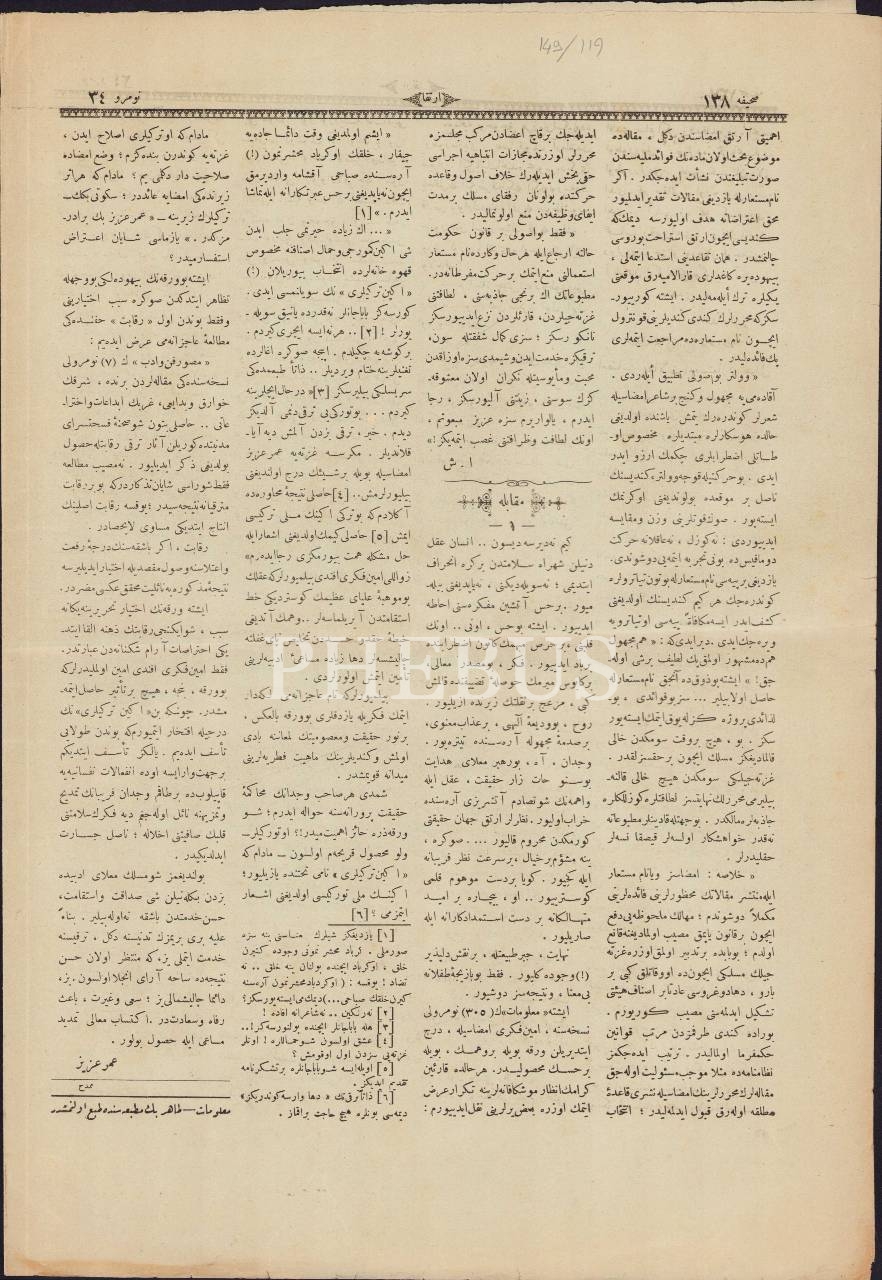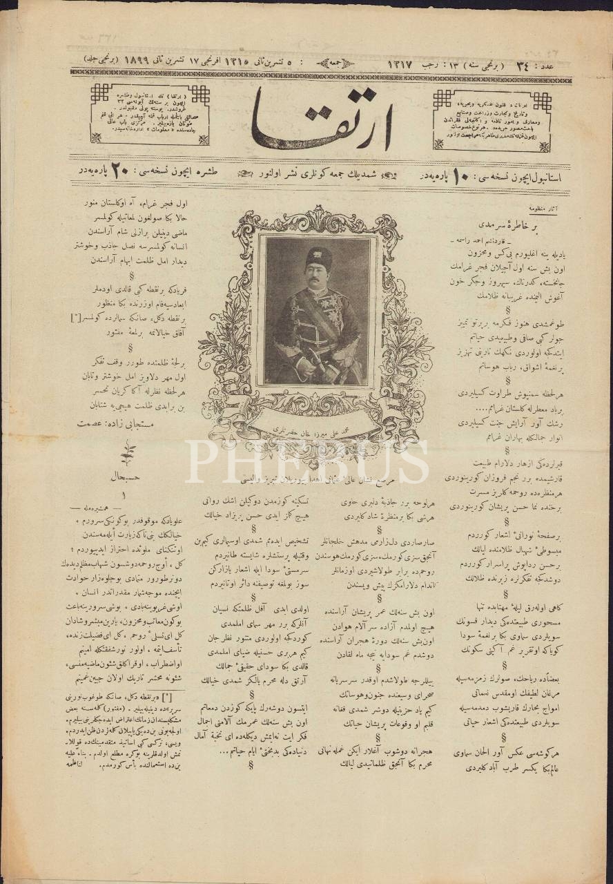 Osmanlıca İrtikâ gazetesi 34. sayı, 17 Teşrin-i Sani 1899, 4 syf., 29x41 cm