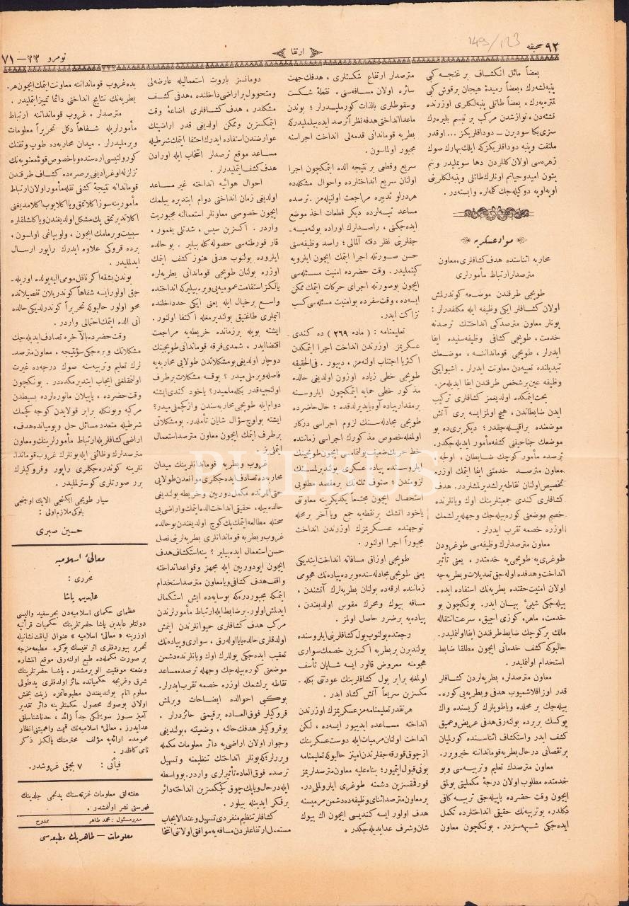 Osmanlıca İrtikâ gazetesi 71. sayı, 3 Temmuz 1900, 4 syf., 29x41 cm