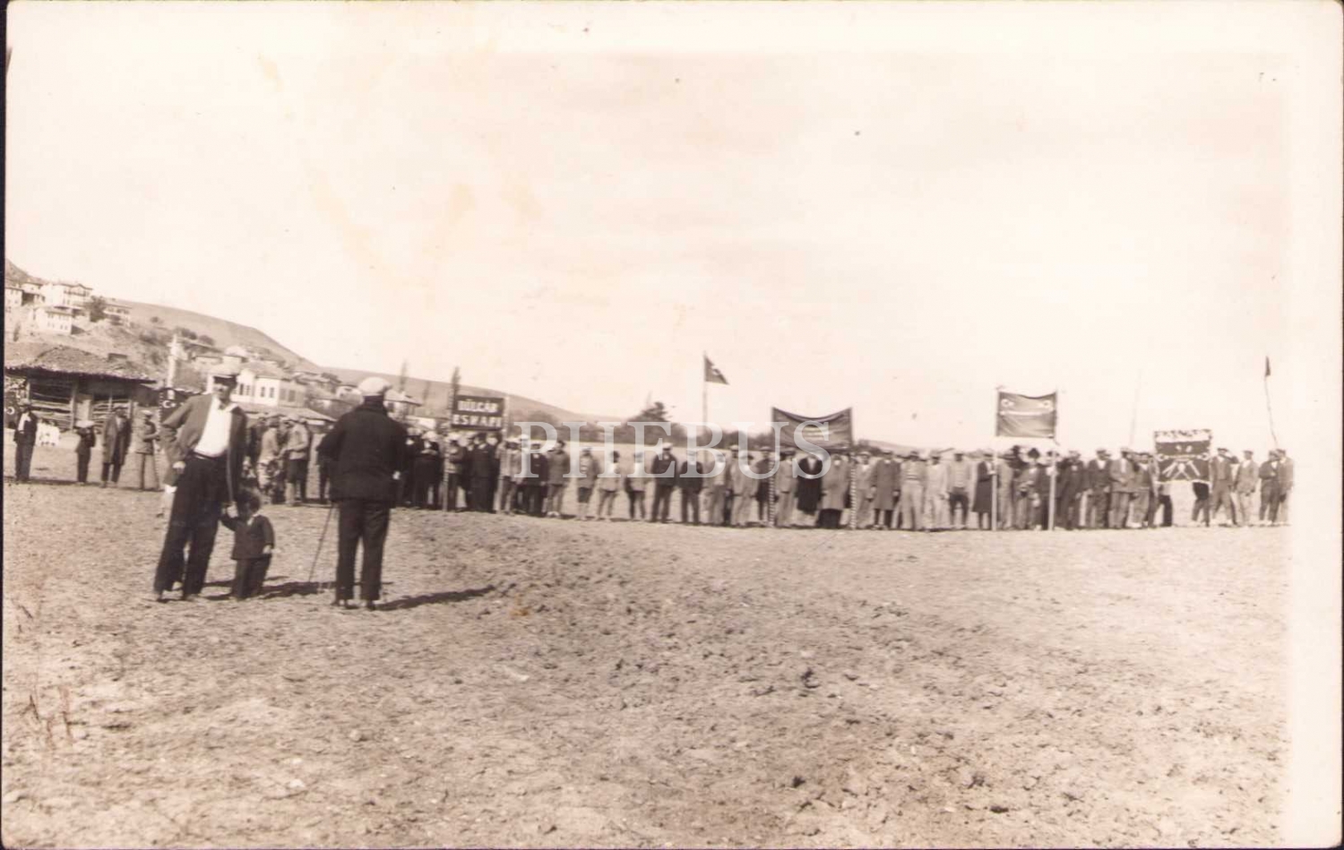 "Dülger Esnafı" pankartının ve Türk bayrağının görüldüğü tören fotoğrafı