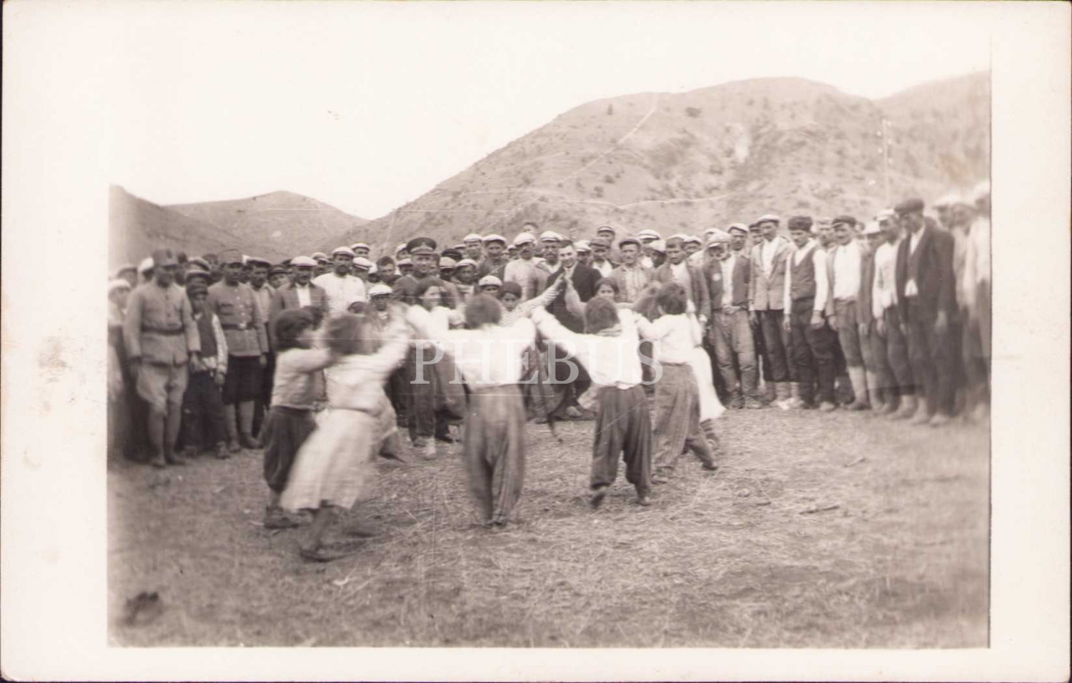 Kutlama yapan köy çocukları ve onları izleyen topluluk