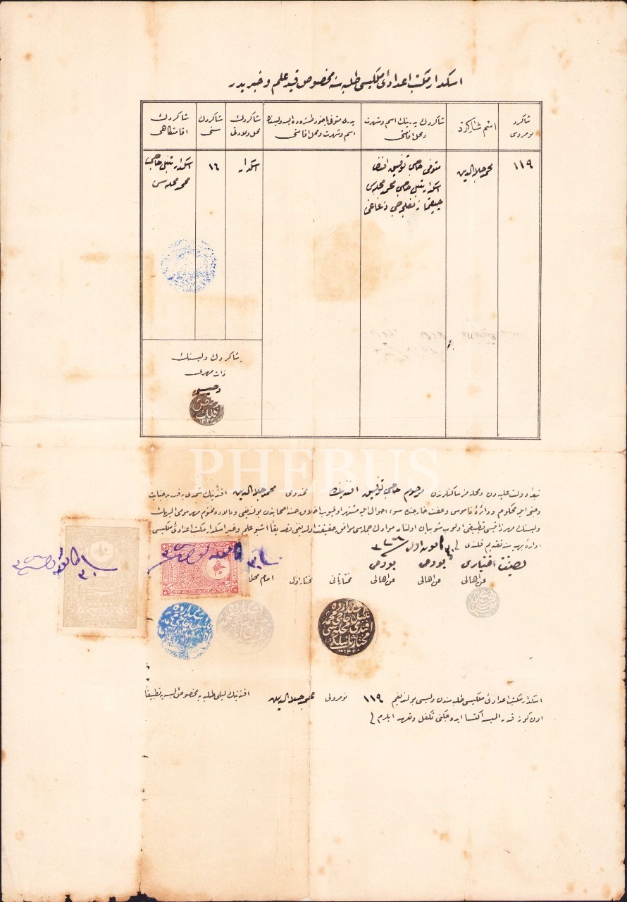 Osmanlıca Üsküdar Mekteb-i İdâdi-i Mülkîsi öğrenci kayıt belgesi, 1326 tarihli, 28x40 cm, kenarları haliyle