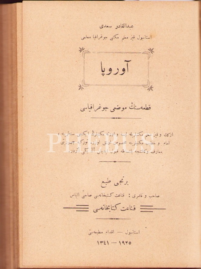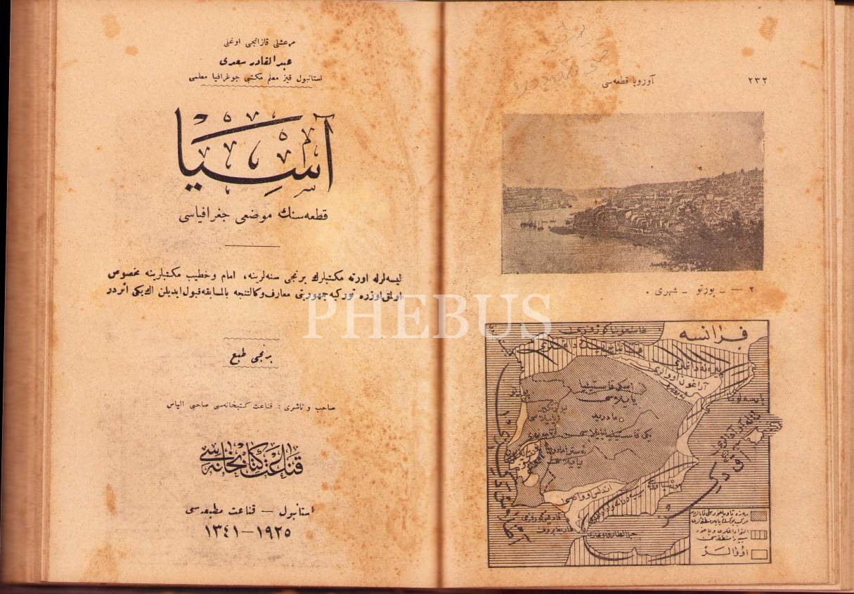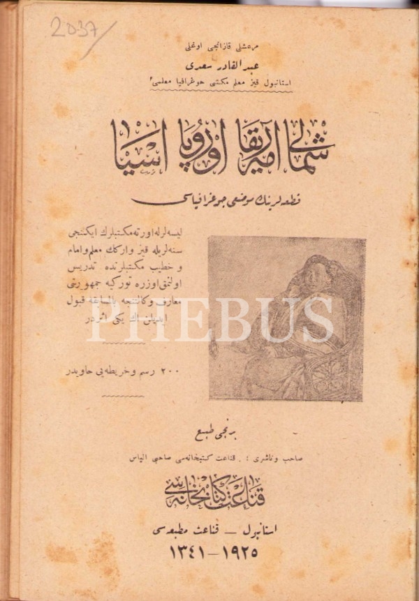 Osmanlıca Şimâl-i Amerika, Avrupa, Asya Kıt'alarının Mevzii Coğrafyası [1. baskı], Abdulkadir Sadî, Kanaat Matbaası, İstanbul 1925, 124+232+189 s., 14x20 cm