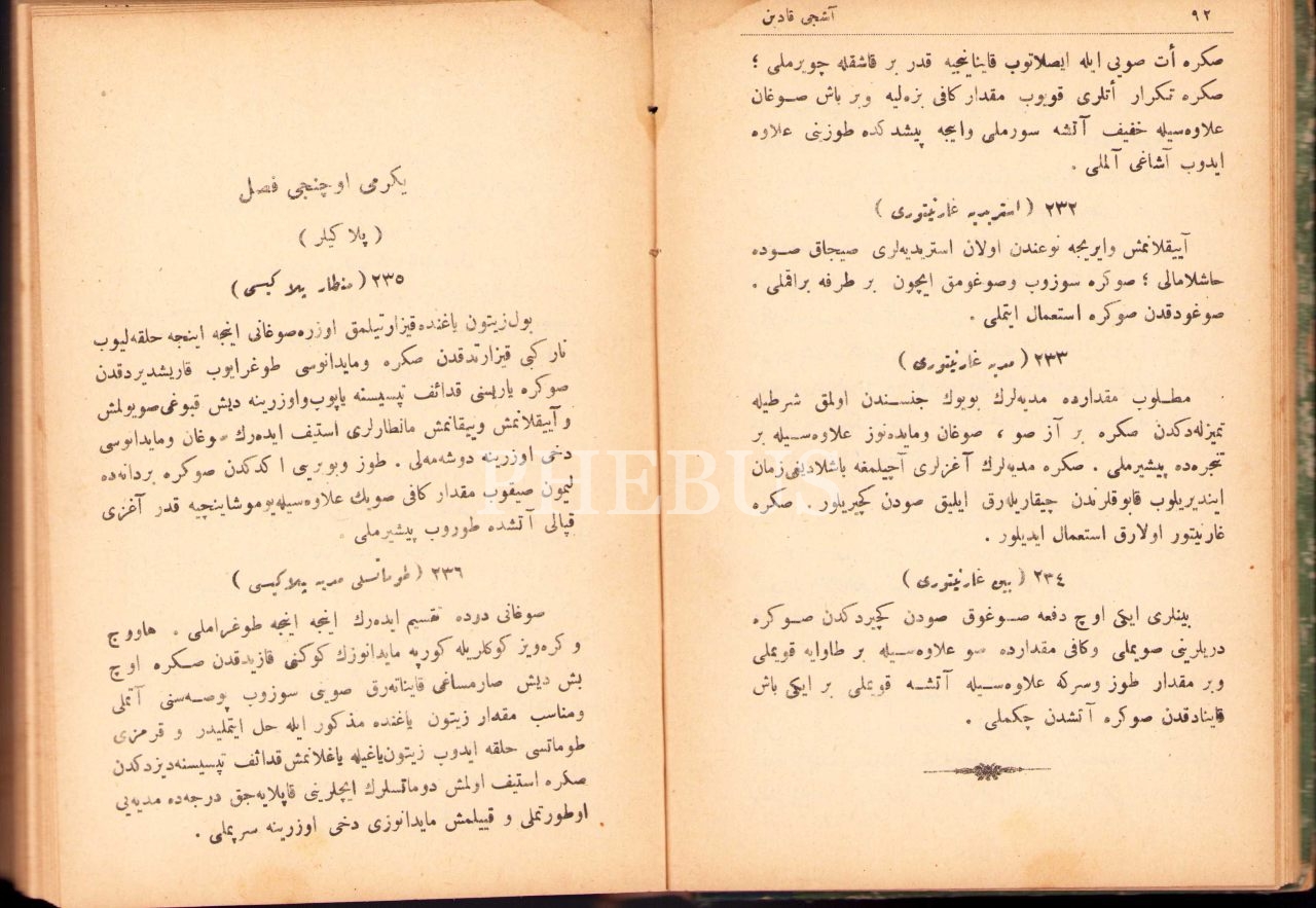 Osmanlıca Evde Aşçı Kadın Yâhûd Mükemmel Yemek Kitabı [2. baskı], Aşçıbaşı Tosun, Âmedi Matbaası, İstanbul 1927, 339 s., 12x18 cm