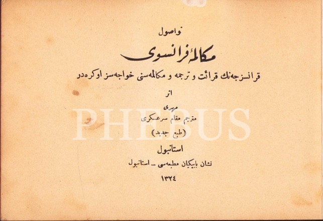 Osmanlıca Nev Usûl Mükâleme-i Fransevî, Mihri (?), Nişan Babikyan Matbaası, İstanbul 1324, 88 s., 13x19 cm