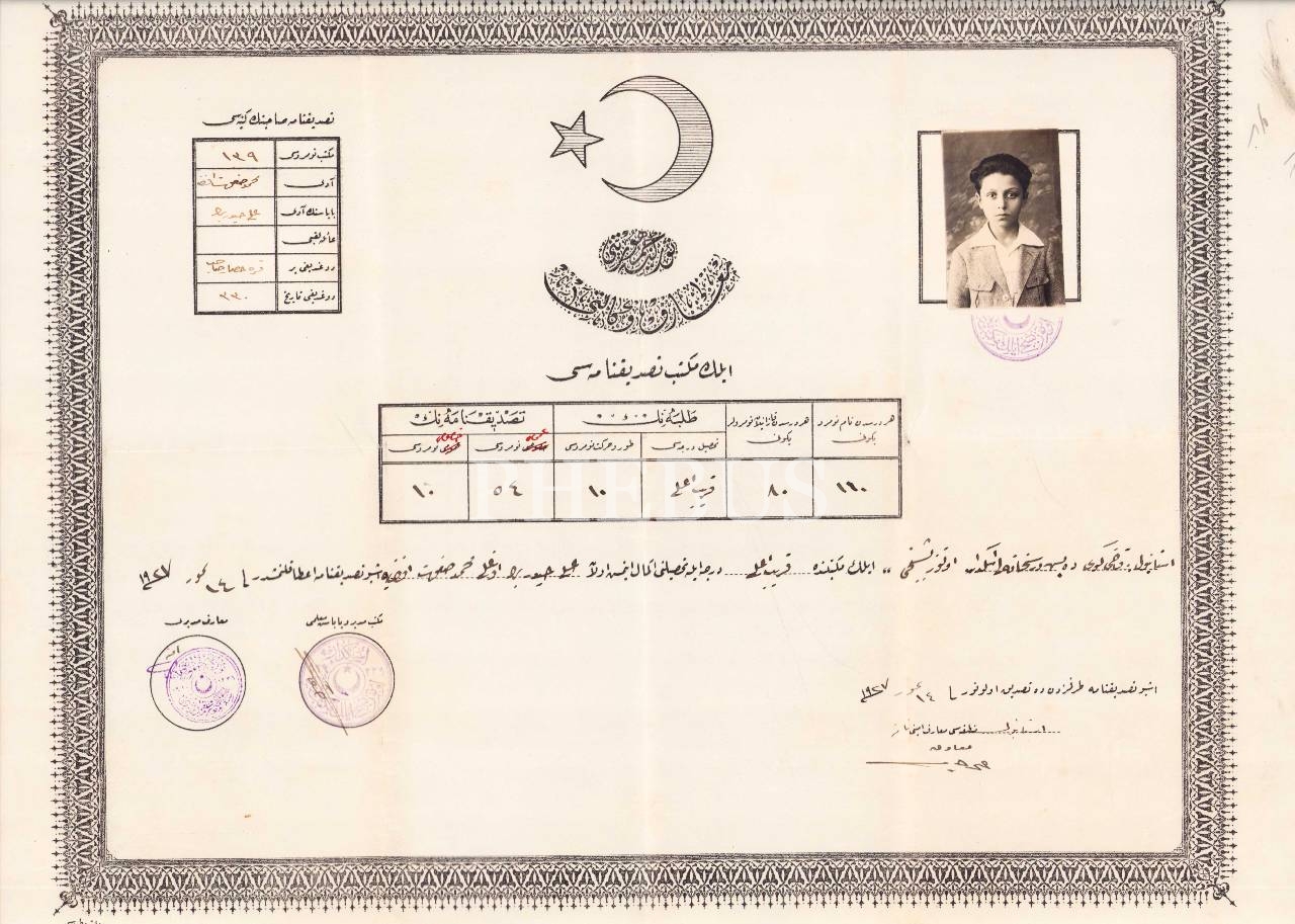 Osmanlıca 1927 tarihli, fotoğraflı ilkokul tasdiknamesi, 35x45 cm