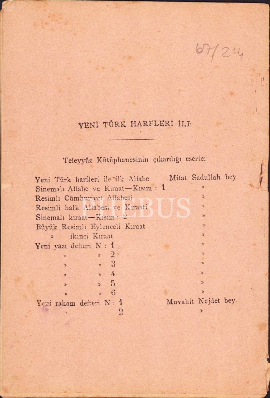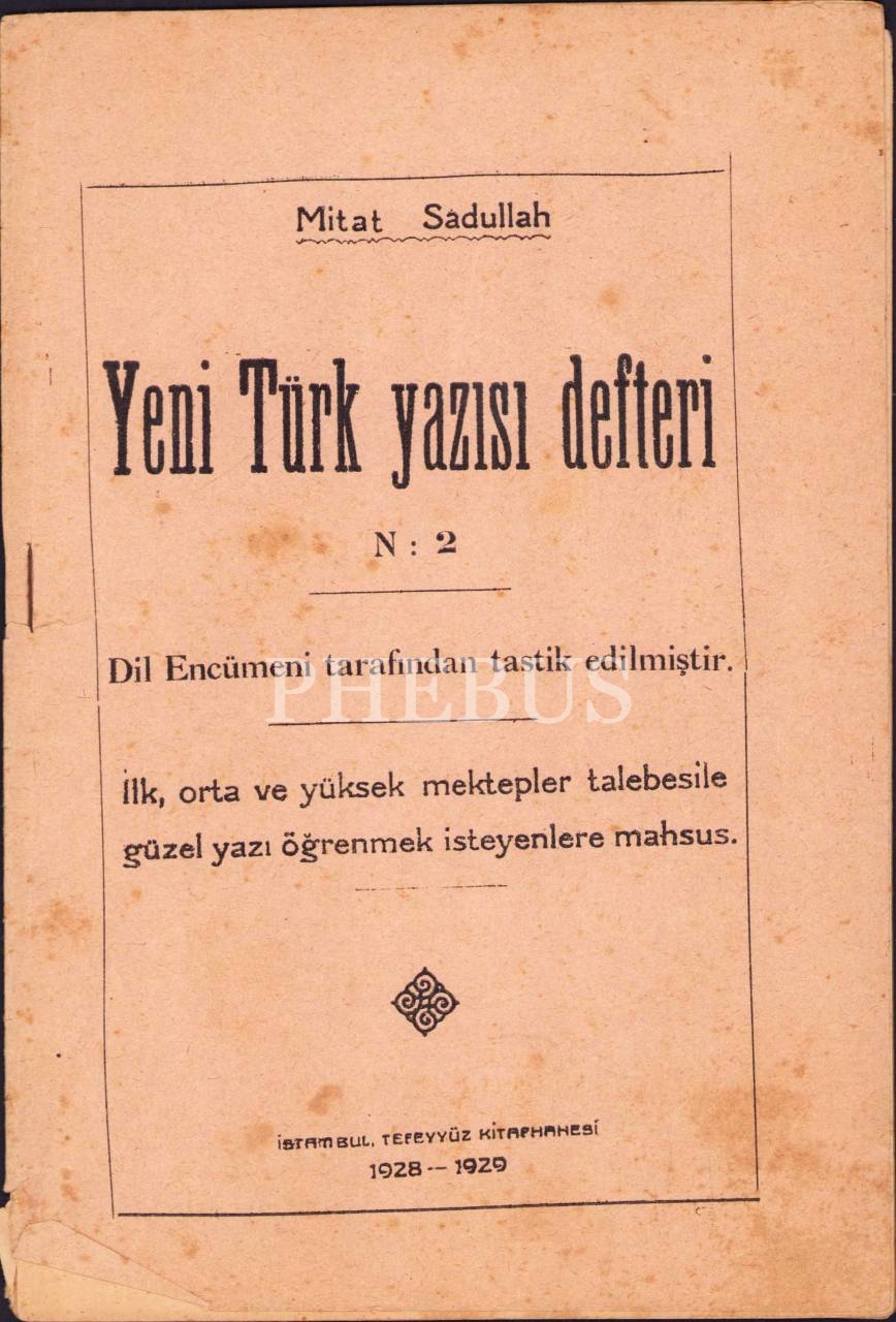 Yeni Türk yazısı defteri, Mitat Sadullah, Tefeyyüz Kitaphanesi, İstanbul 1928-29, 16 syf., 15x23 cm