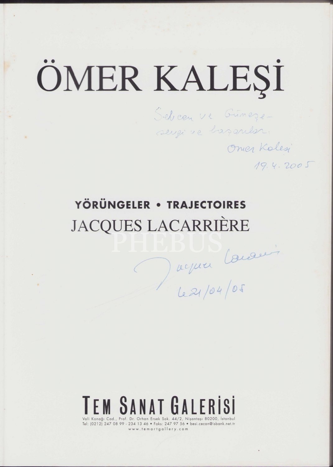 Ömer Kaleşi [Yörüngeler-Trajectoires Jacques Lacarriere, Ressam Ömer Kaleşi'den ve Jacques Lacarriere'den Çifte İmzalı, TEM Sanat Galerisi, Eylül 2004, 288 sayfa, 23x32 cm, sırtı haliyle