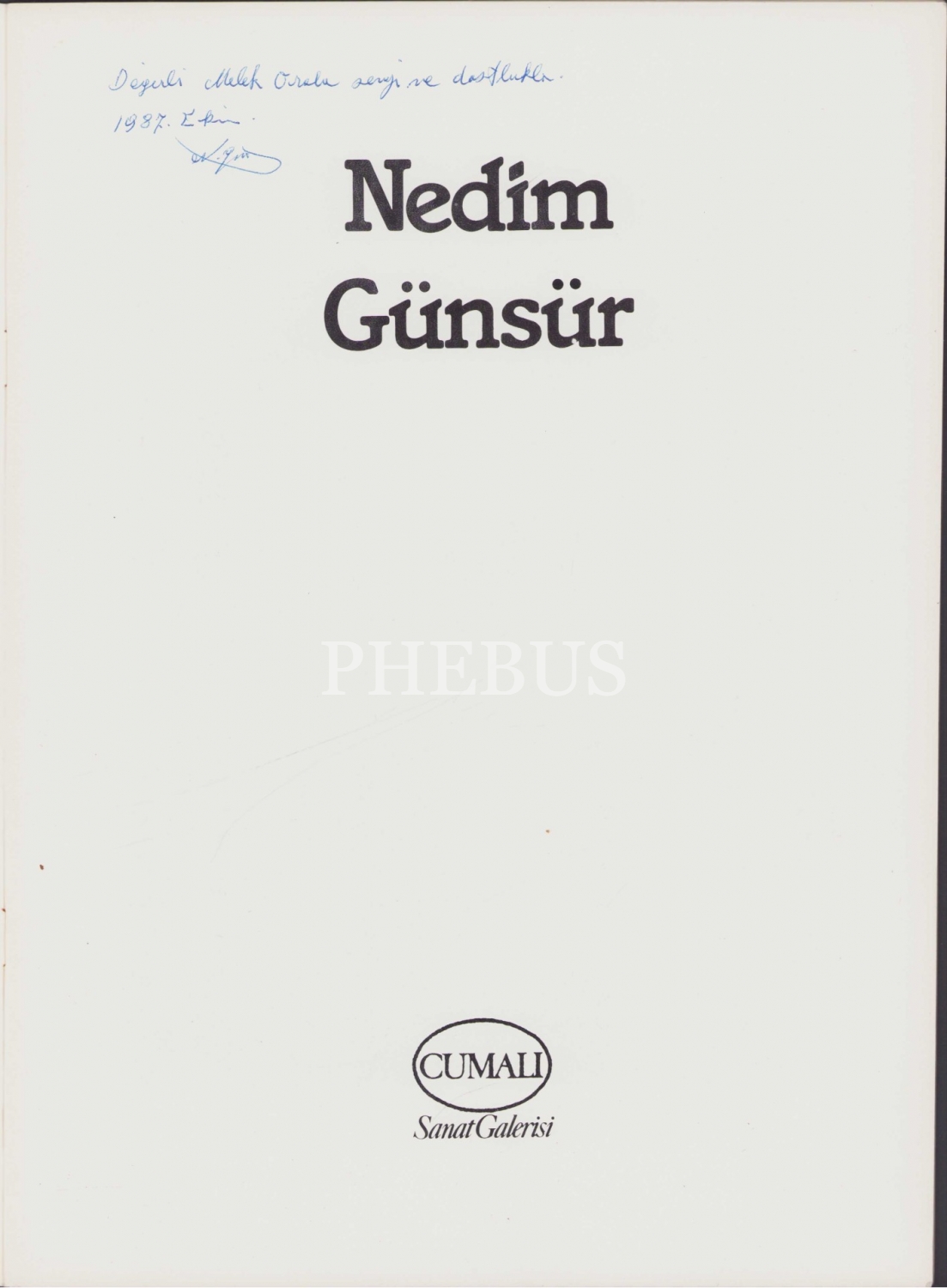 Ressam Nedim Günsür'den İthaflı ve İmzalı "Nedim Günsür", Cumalı Sanat Galerisi, İstanbul 1983, 24 sayfa, 25x33 cm