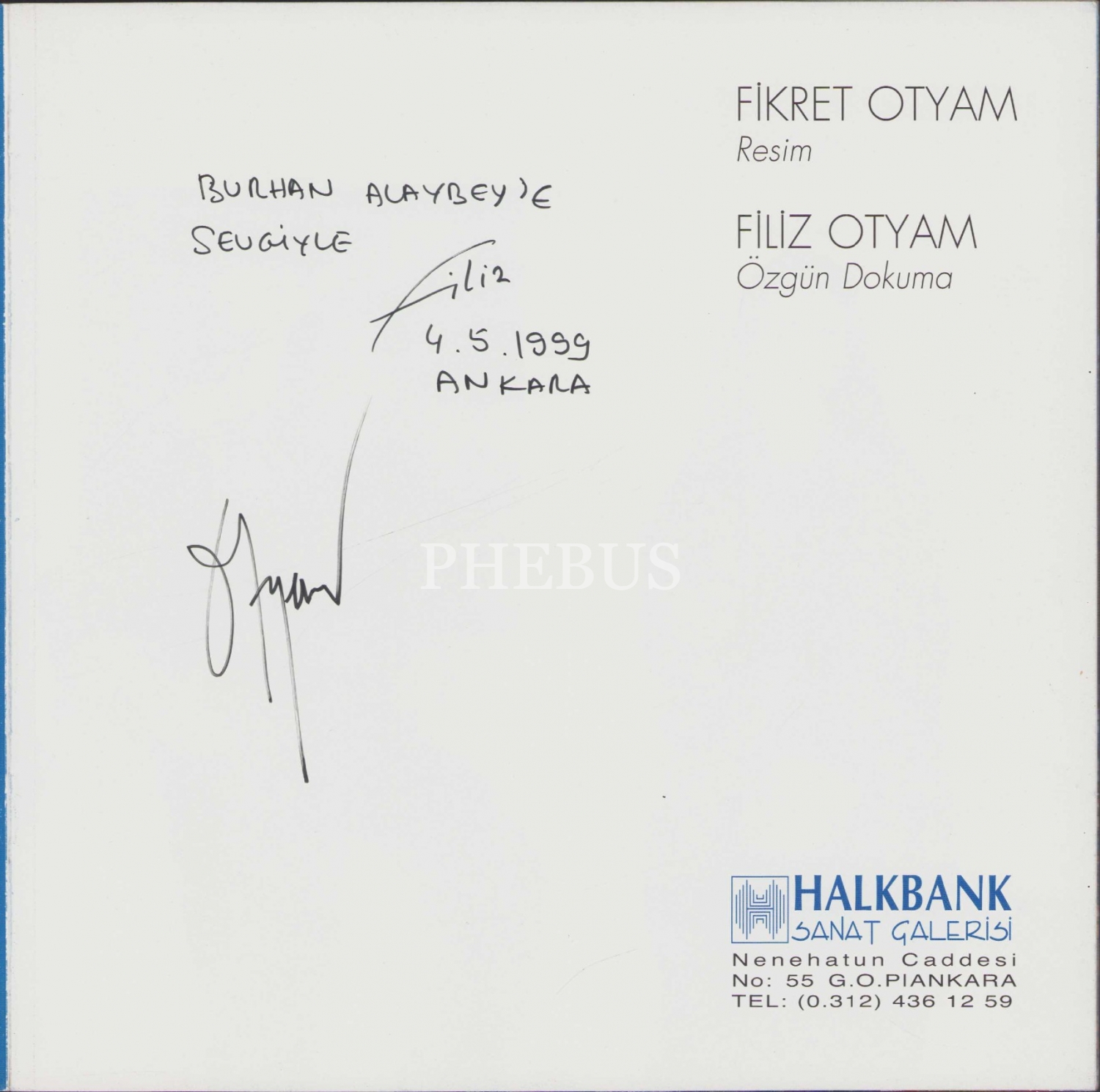 Filiz Otyam'dan İthaflı ve İmzalı "Fikret Otyam / Filiz Otyam - Resim - Özgün Dokuma", Halkbank Sanat Galerisi, 1999, 36 sayfa, 23x24 cm