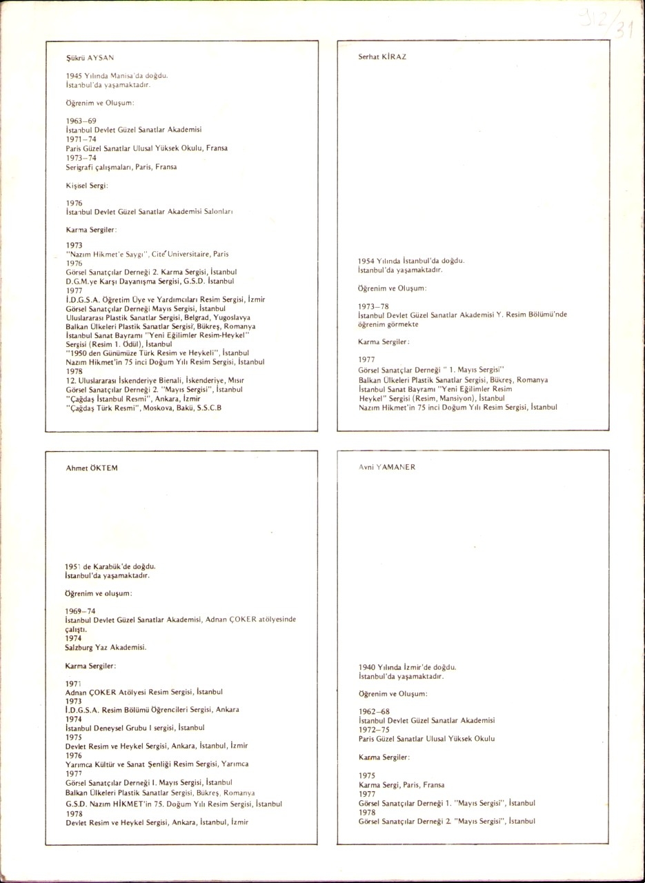 Şükrü Aysan, Serhat Kiraz, Ahmet Öktem, Avni Yamaner Resim Sergi Kataloğu, 10-28 Kasım 1978, Devlet Güzel Sanatlar Galerisi, Beyoğlu-İstanbul, Şükrü Aysan, Serhat Kiraz ve Avni Yamaner'den imzalı, 17x23 cm