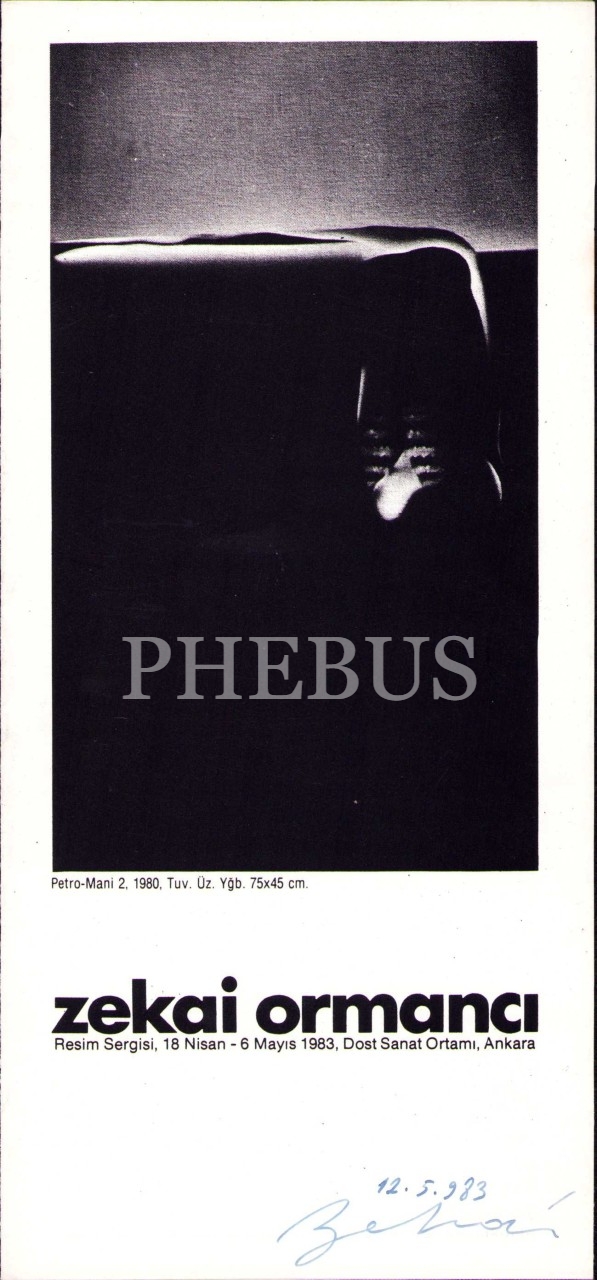 Ressam Zekai Ormancı'dan Islak İmzalı Resim Sergisi Broşürü, 18 Nisan - 6 Mayıs 1983, Dost Sanat Ortamı, Ankara, 12x25 cm