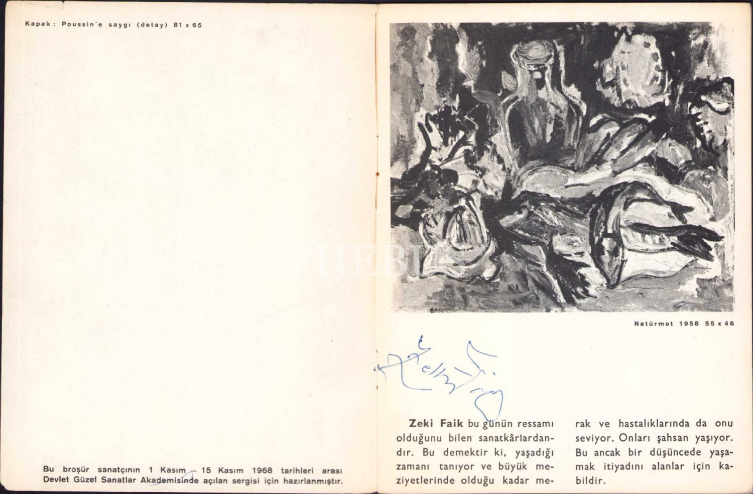 Ressam Zeki Faik İzer'den İmzalı "Zeki Faik İzer", Devlet Güzel Sanatlar Akademisi Yüksek Resim Bölümü 1968 Yayını 5, 20 sayfa, 15x19 cm