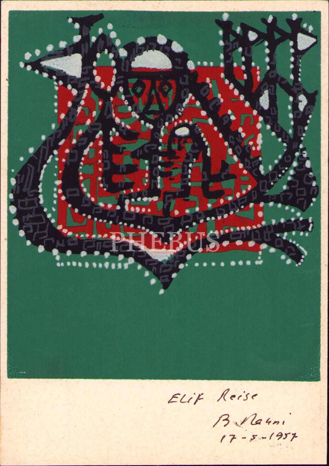 Bedri Rahmi Eyüboğlu'ndan İthaflı ve İmzalı Baskı ''İkiz Kuşlar'' Çalışması, 11x15 cm