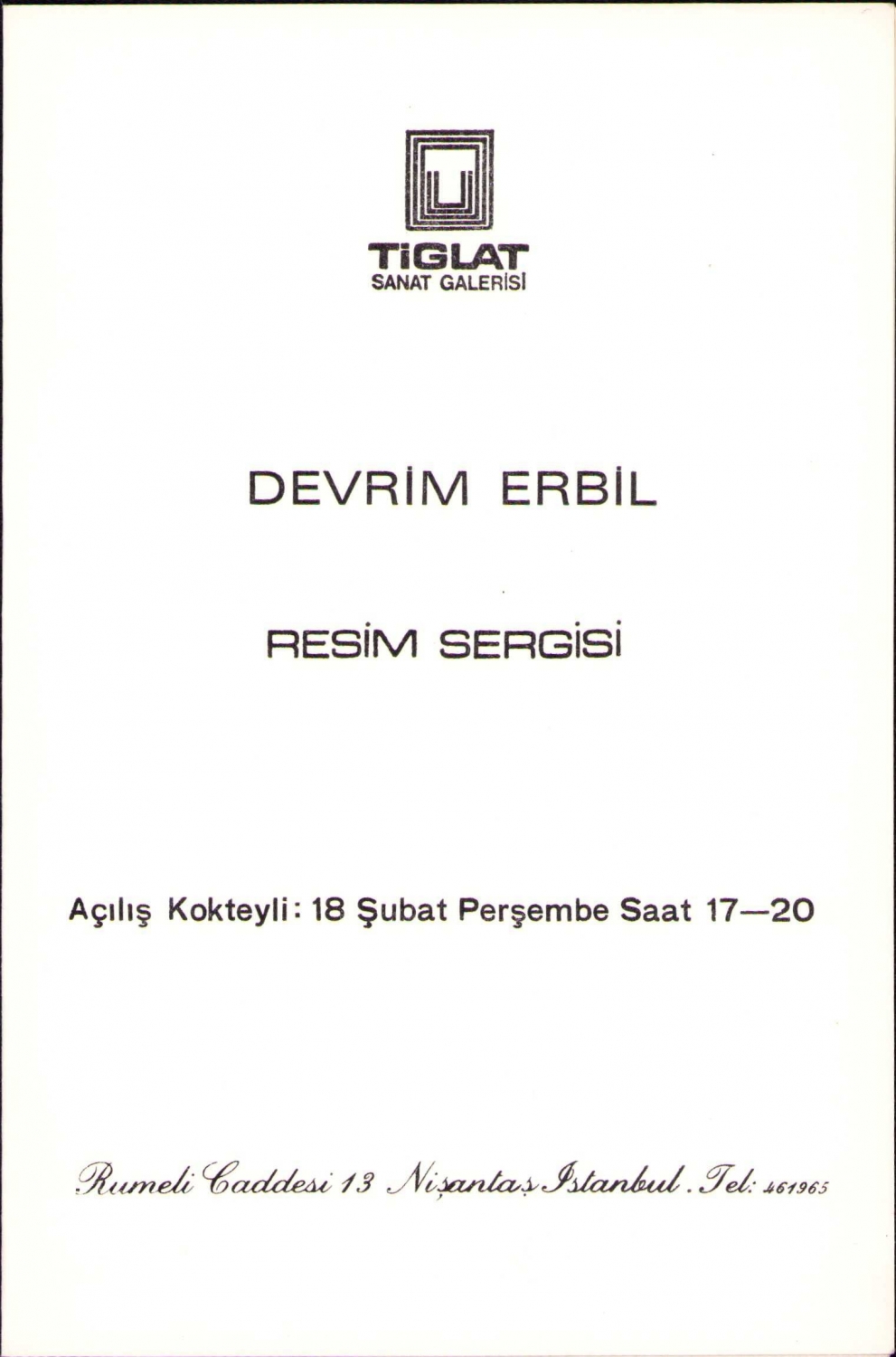 Devrim Erbil Resim Sergisi Davetiyesi, Devrim Erbil'den Islak İmzalı, TİGLAT Sanat Galerisi, 18 Şubat 1983, 8x20 cm