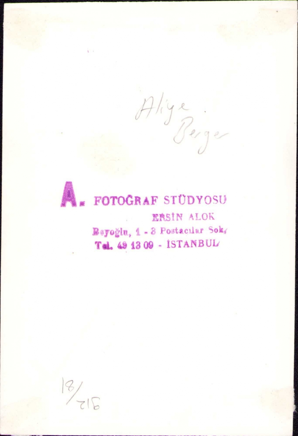 Ressam Aliye Berger Fotoğrafı, A. Fotoğraf Stüdyosu (Ersin Alok) Damgalı, 12x18 cm