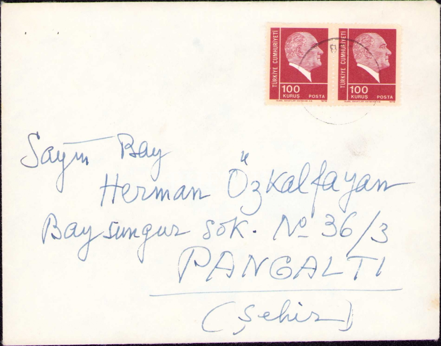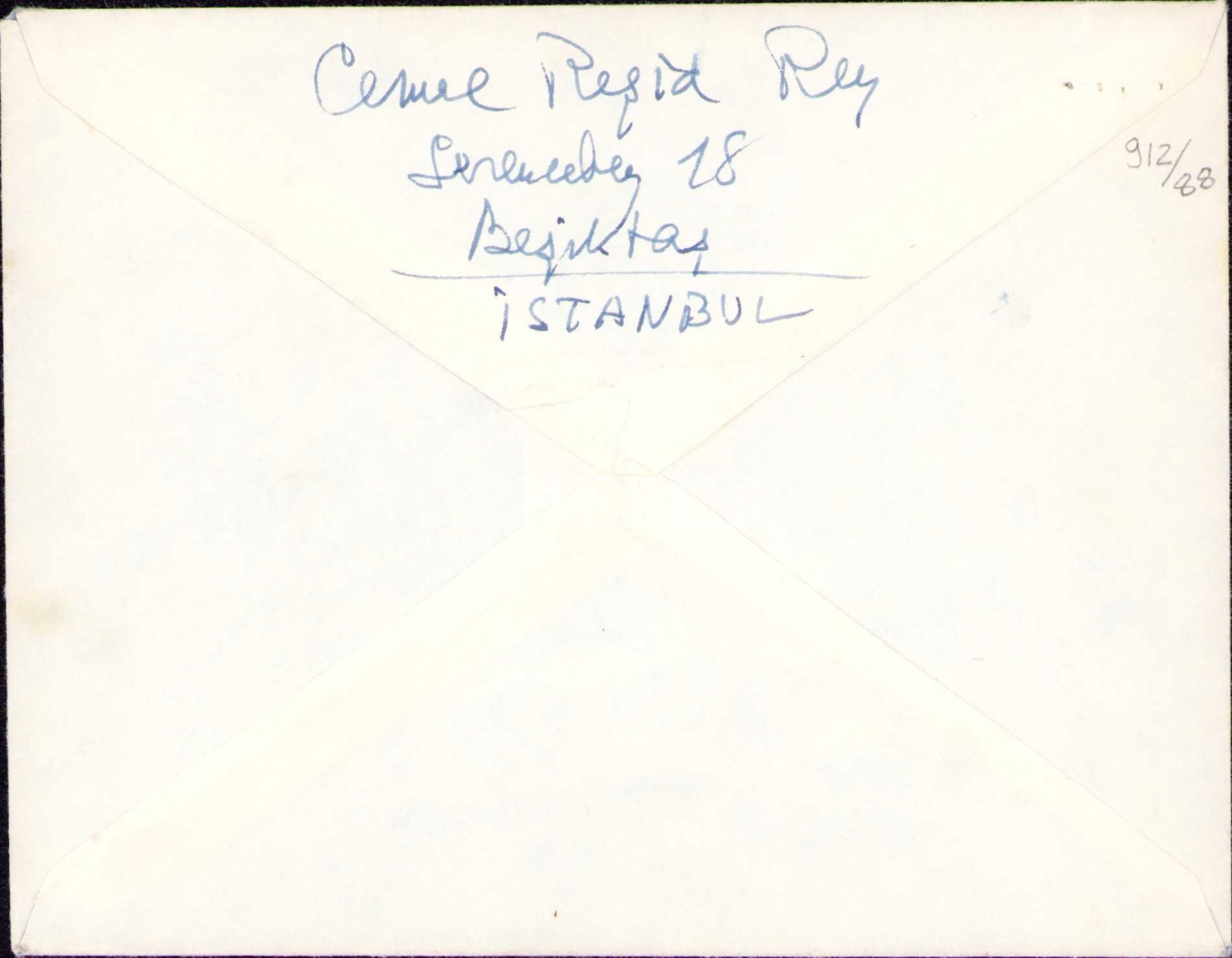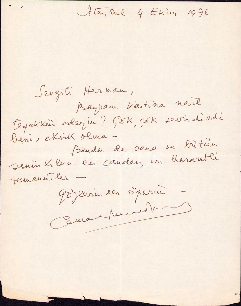 Devlet Sanatçısı Cemal Reşit Rey'den Besteci Herman Özkalfayan'a Gönderilmiş 4 Ekim 1976 Tarihli Teşekkür Mektubu, Orijinal Zarfı İçinde, Zarf 17x13 cm, 24x30 cm