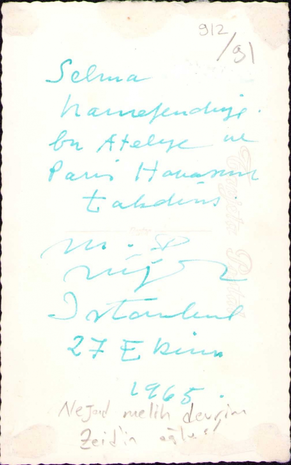 Ressam Fahrelnissa Zeid'in Oğlu Sanatçı Nejad Devrim'in İthaflı ve İmzalı Bir Fotoğrafı, 27 Ekim 1965 tarihli