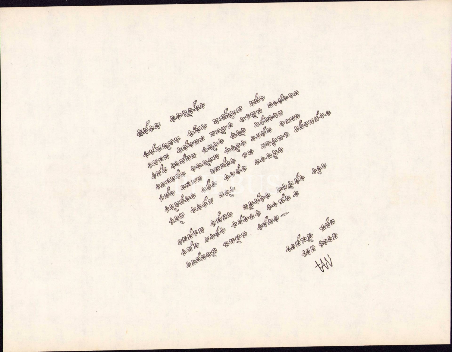 Karikatürist Tan Oral İmzalı, yazı formunda çiçek çizimi, 32x24 cm