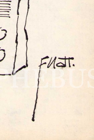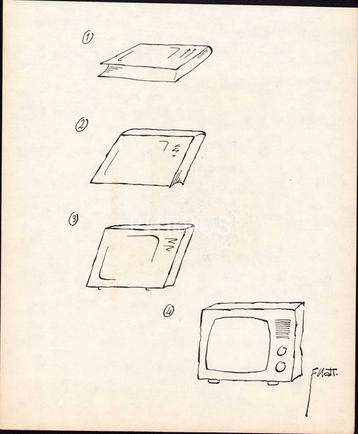 Fuat imzalı, kitabın televizyona dönüşümü temalı çizim, 25x30 cm