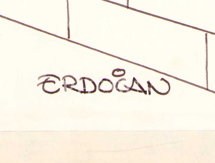 Karikatürist Erdoğan Başol İmzalı çizim, 25x34 cm