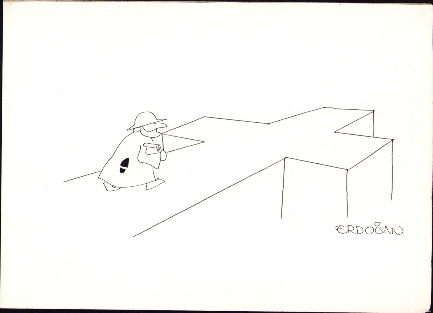 Karikatürist Erdoğan Başol İmzalı çizim, 34x25 cm
