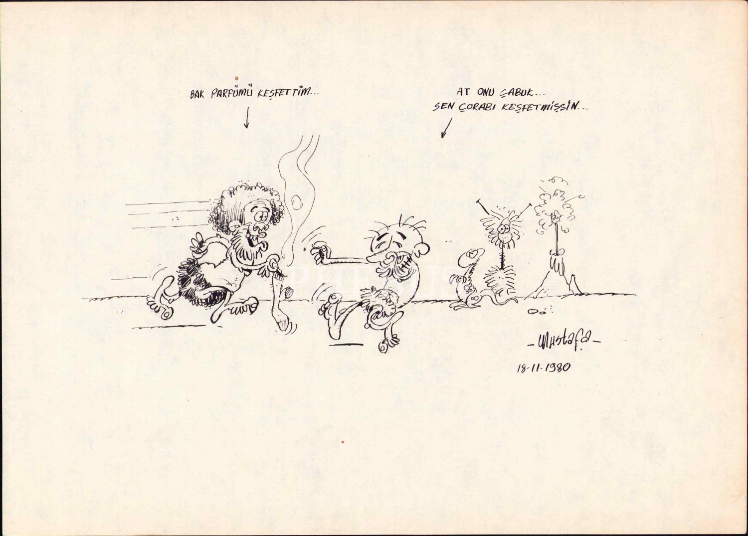 Mustafa İmzalı, 18 Kasım 1980 tarihli çizim, 34x25 cm