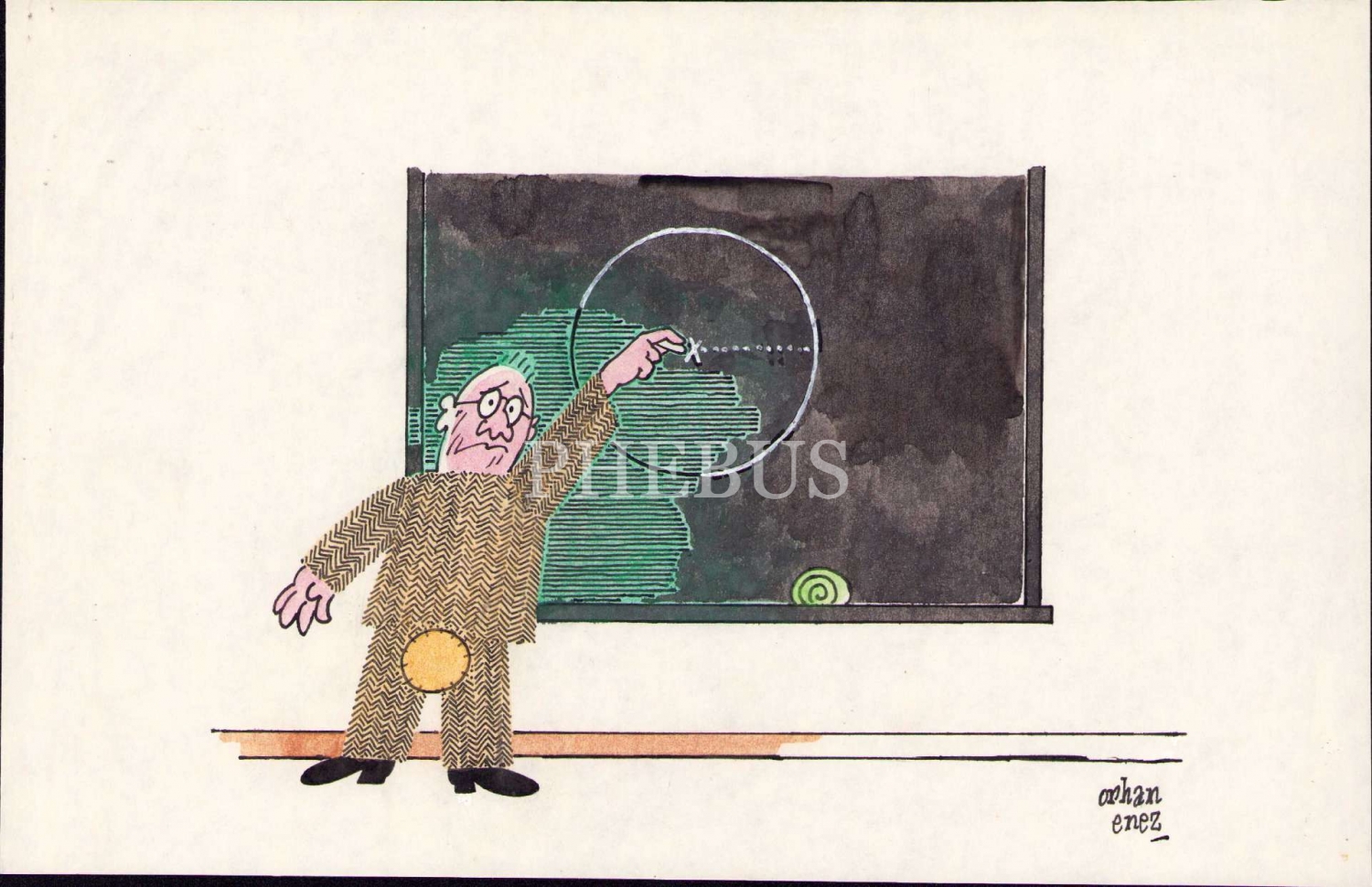 Karikatürist Orhan Enez İmzalı karikatür, 28x18 cm