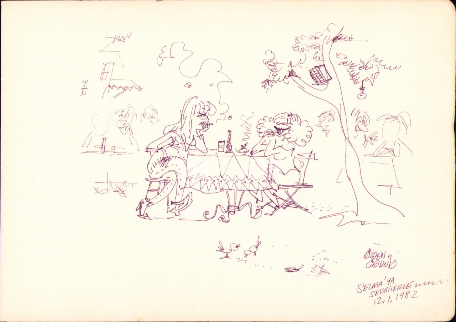 Türk Karikatürist ve Seramik Sanatçısı Özden Öğrük'ten İthaflı ve İmzalı karikatür, 12 Ocak 1982 tarihli, 35x25 cm