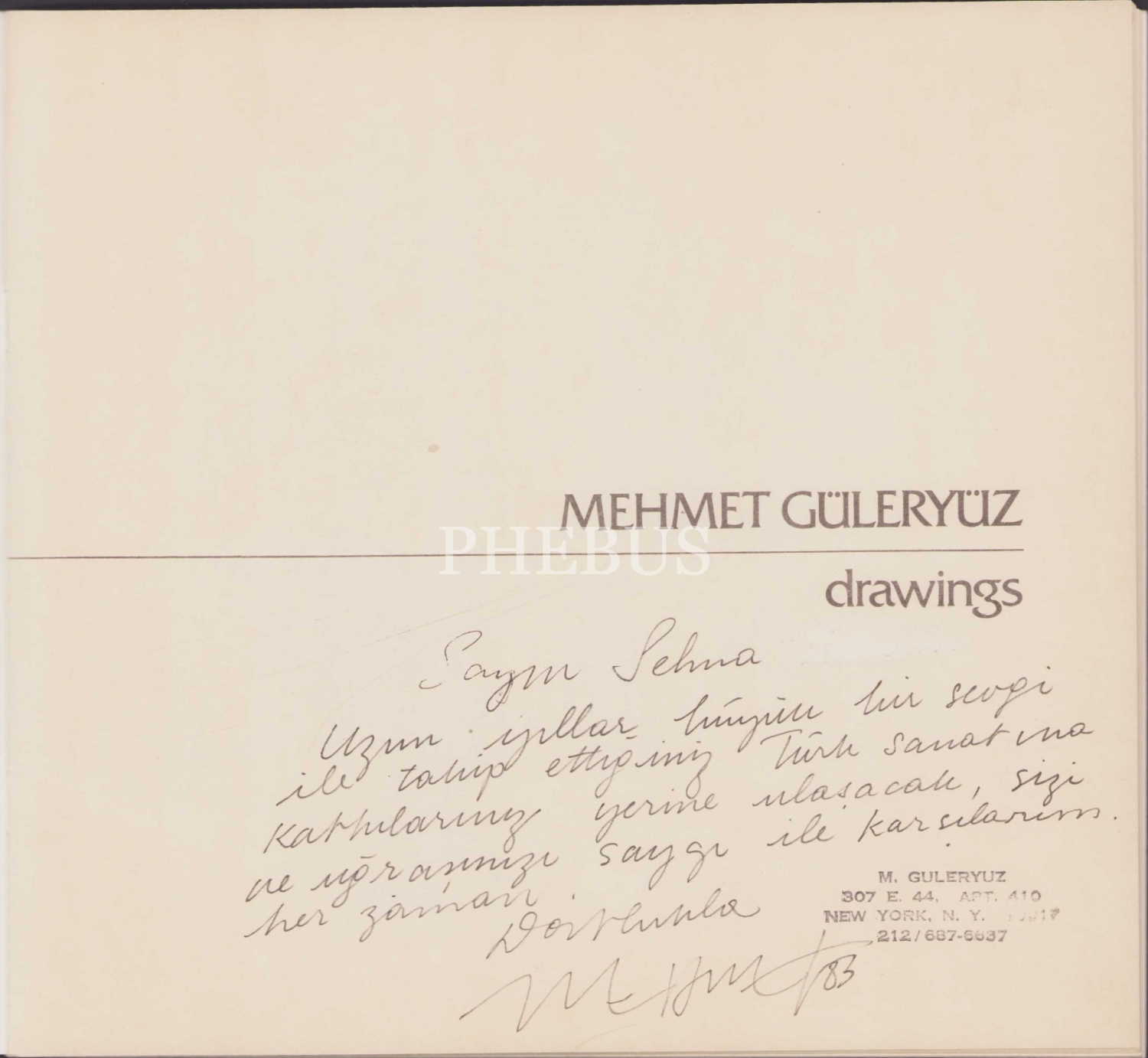 Drawings, Mehmet Güleryüz'den İthaflı ve İmzalı, Yüksel Ofset, İstanbul 1981, 24 sayfa, 25x23 cm