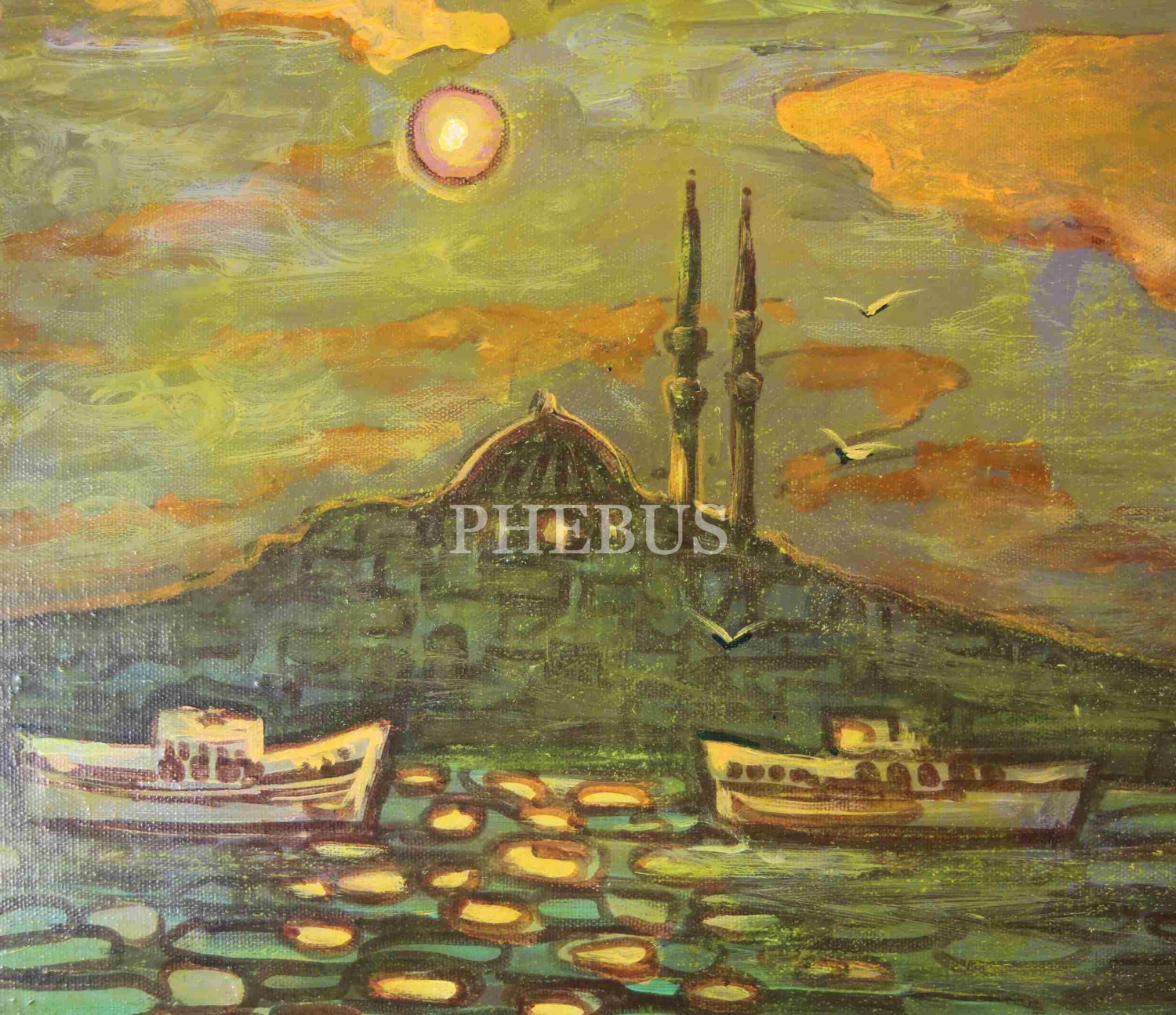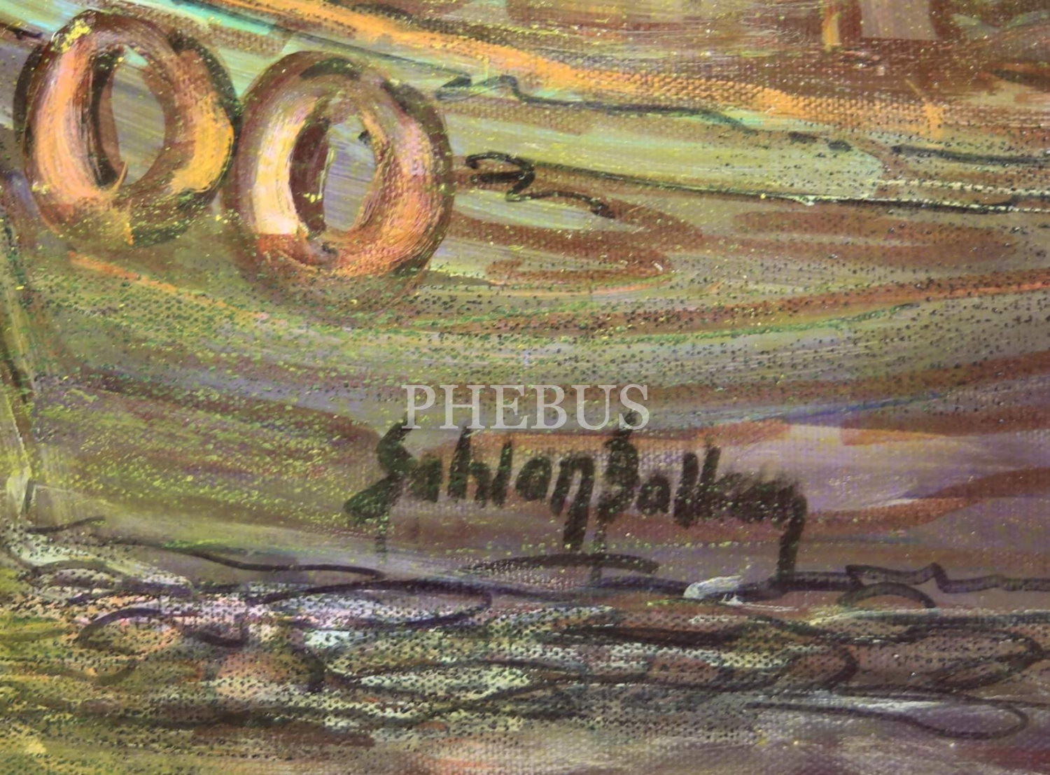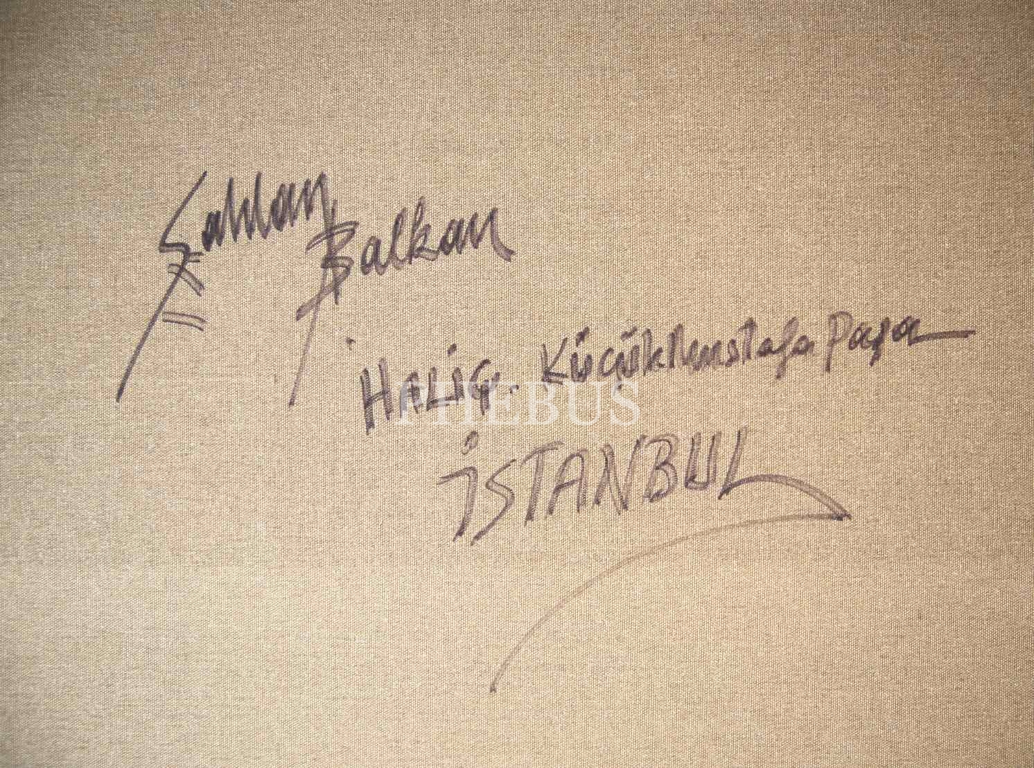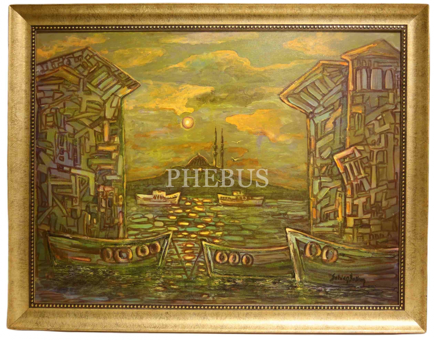 Ressam Şahlan Balkan İmzalı Büyük Boy Yağlı Boya Resim, "İstanbul Haliç Küçük Mustafa Paşa", çerçeveli, 80x60 cm