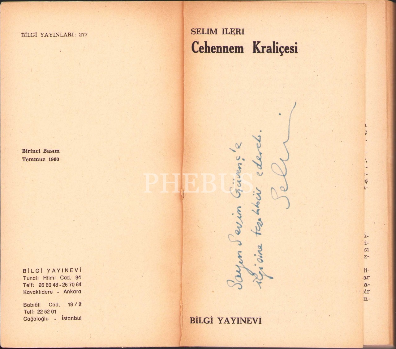 Selim İleri'den İthaflı ve İmzalı "Cehennem Kraliçesi", İlk Baskı, 1980, Bilgi Yayınevi