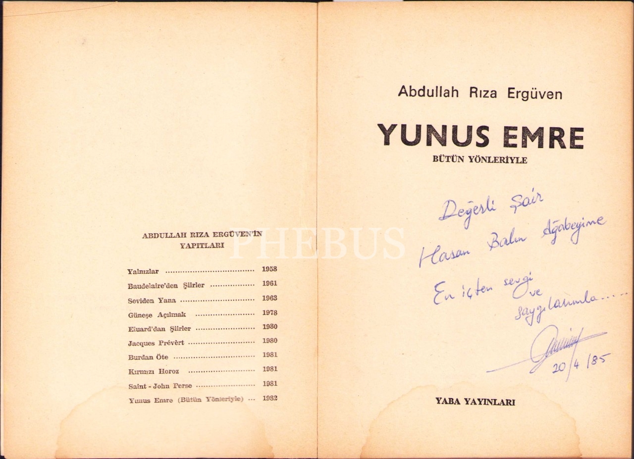 Yunus Emre Bütün Yönleriyle, Abdullah Rıza Ergüven, Yaba Yayınları, İlk Baskı, 1982
