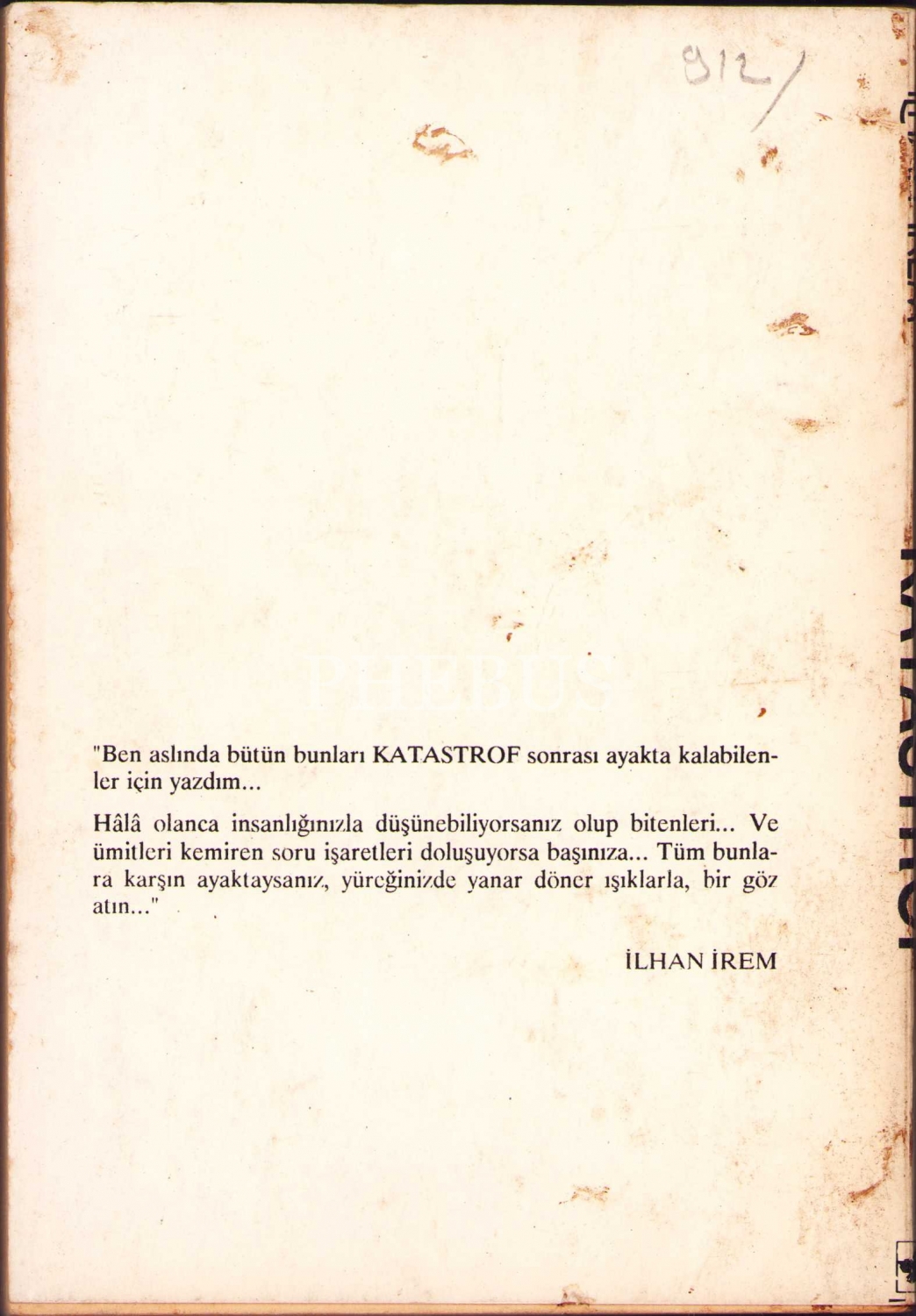 İlhan İrem'den İthaflı ve İmzalı Katastrof, Yaprak Yayınları, İstanbul - Mart 1990