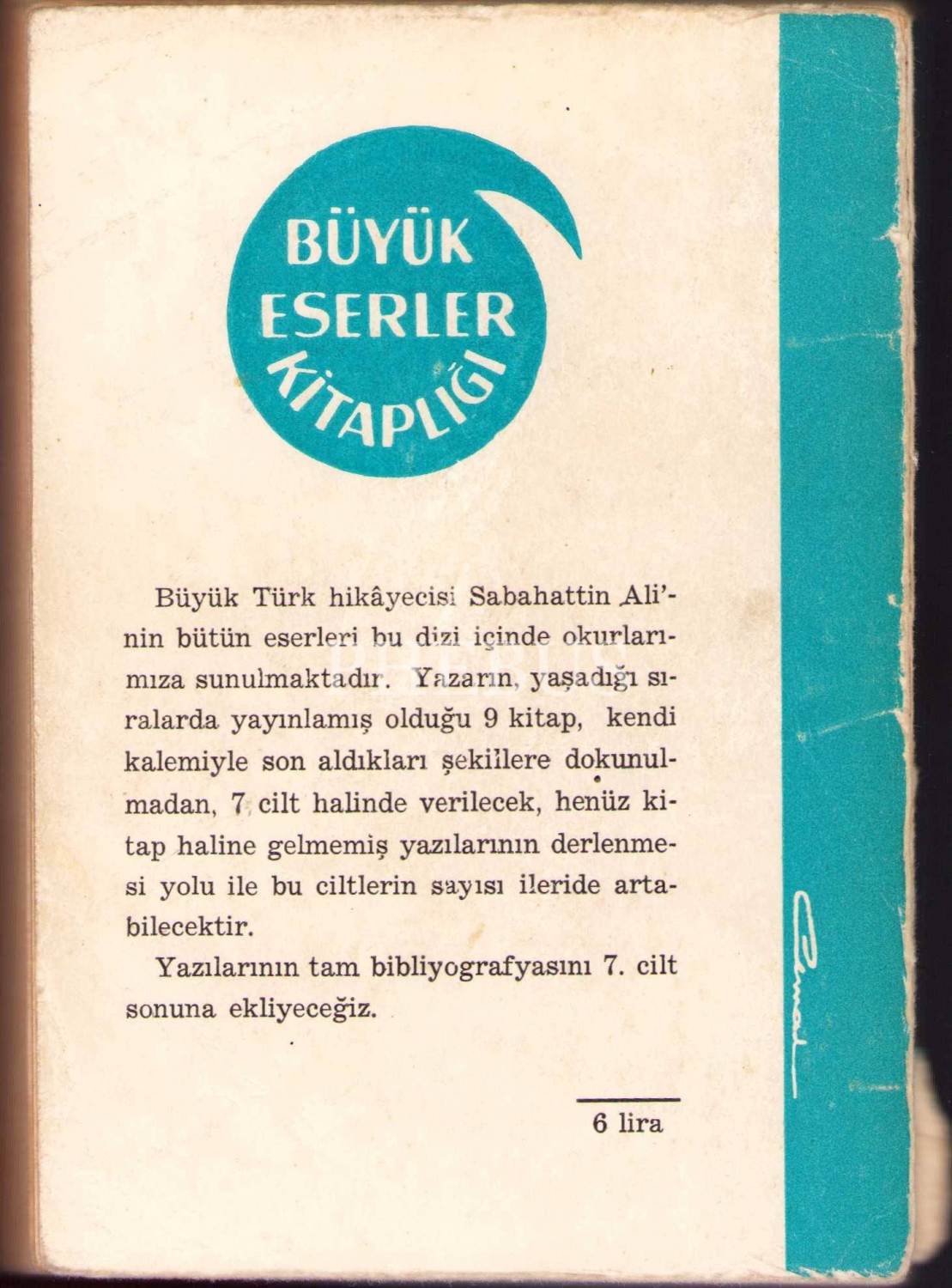Sabahattin Ali Bütün Eserleri: 1-2 - Değirmen Dağlar ve Rüzgar, Varlık Yayınları, Ekim 1965