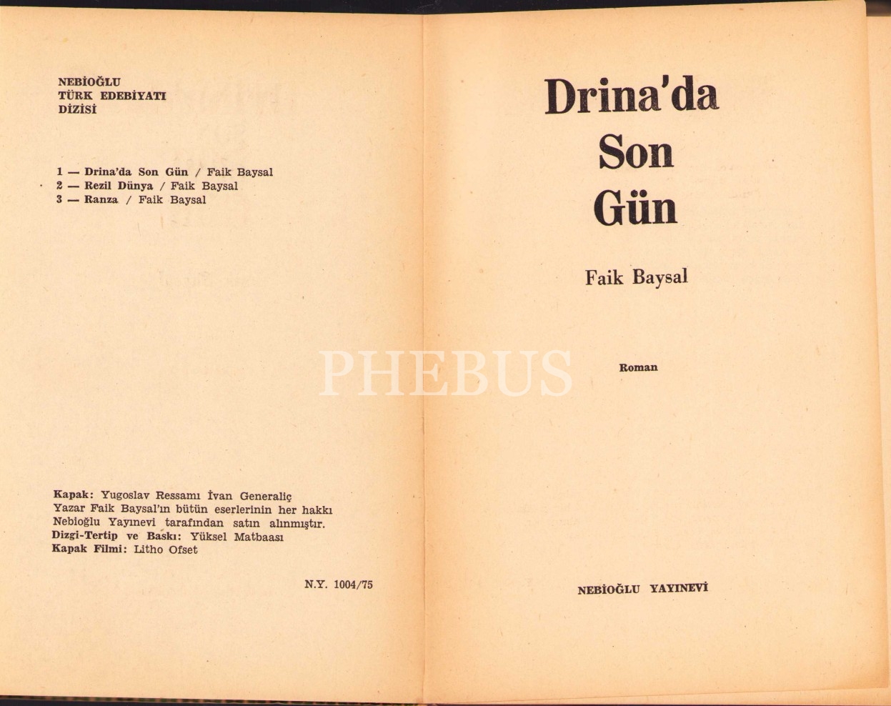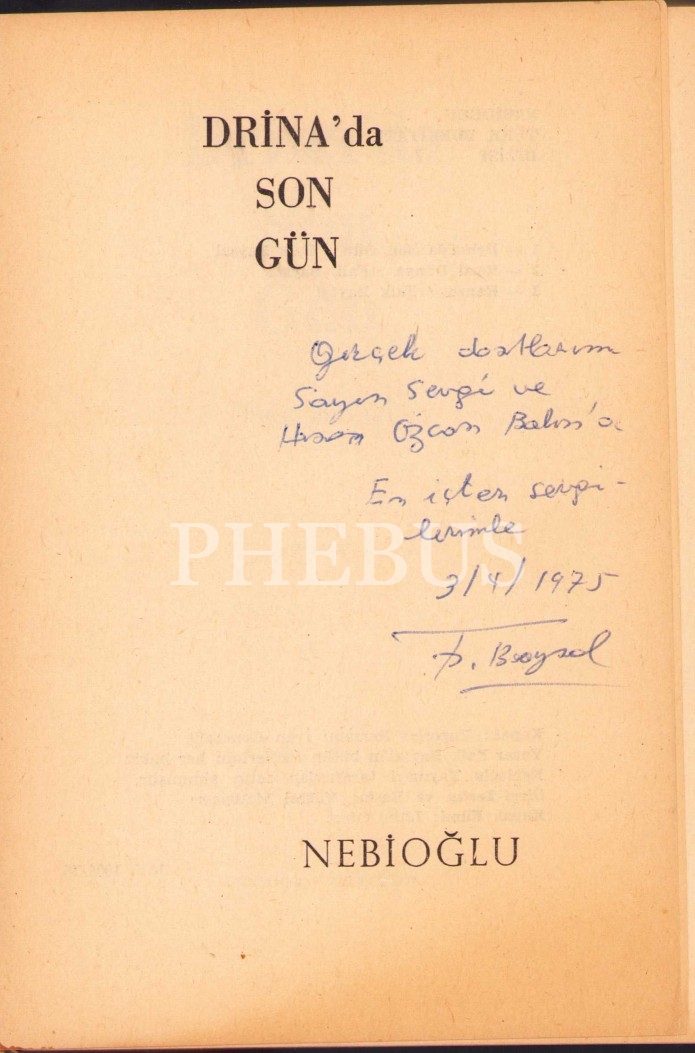 Faik Baysal'dan Sevgi ve Hasan Balın Çiftine İthaflı ve İmzalı Drina'da Son Gün, Nebioğlu Yayınevi, İstanbul 1971